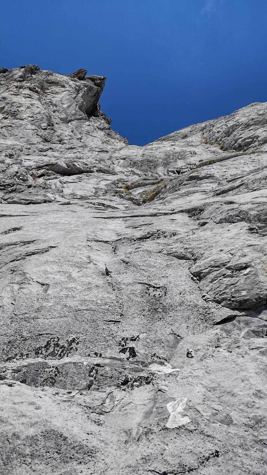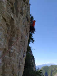 -portati solo i rinvii. -i tiri vanno circa da 30 a 40m -le soste hanno 2 spit uniti da cordone I gradi secondo noi: L1- 6a+. Passo del tettino…