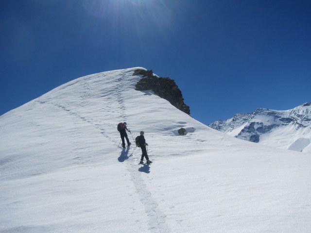 L'idea era il colle San Giacomo, poi i pendii sotto la cresta a sx del colle ci sono parsi più invitanti. Fermati 30 metri sotto…
