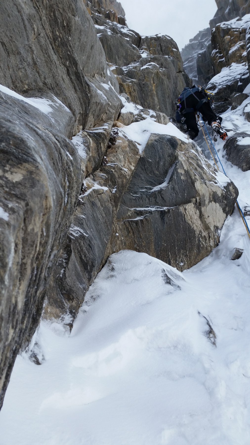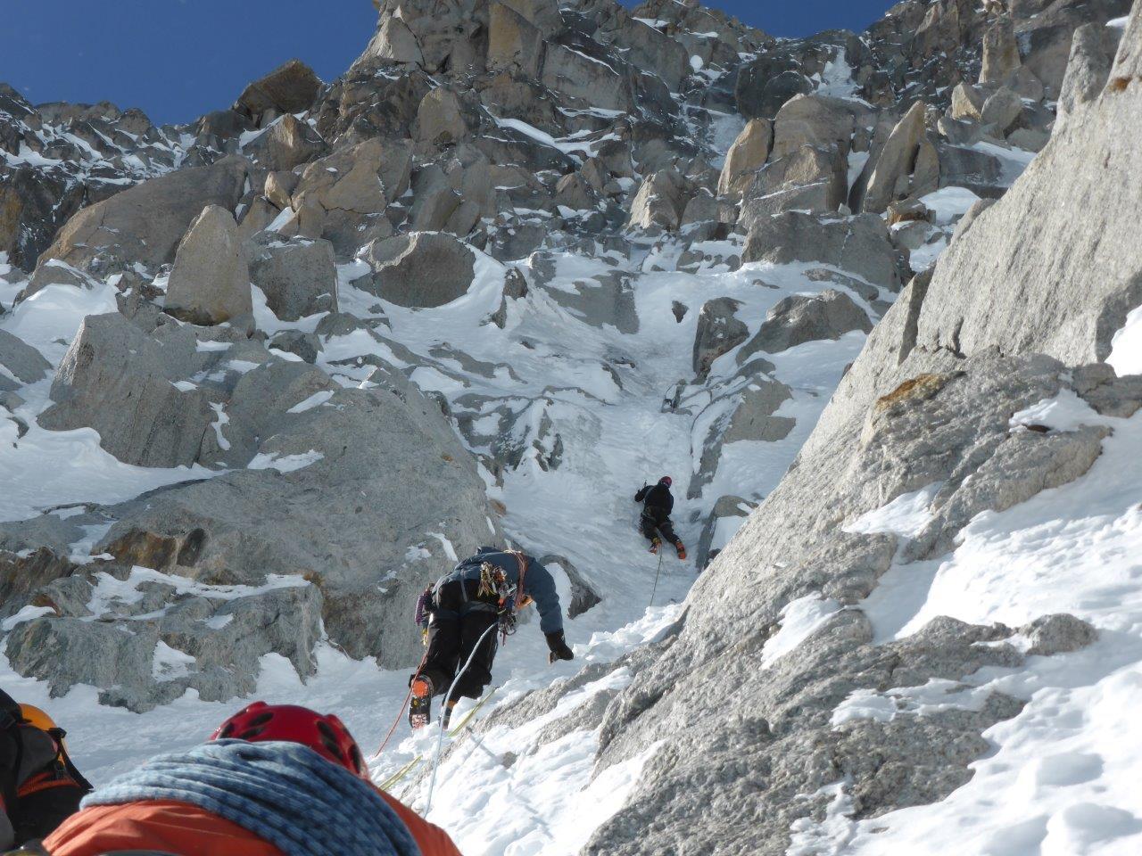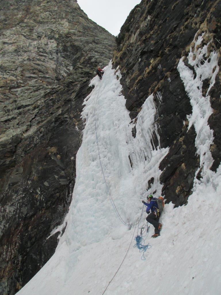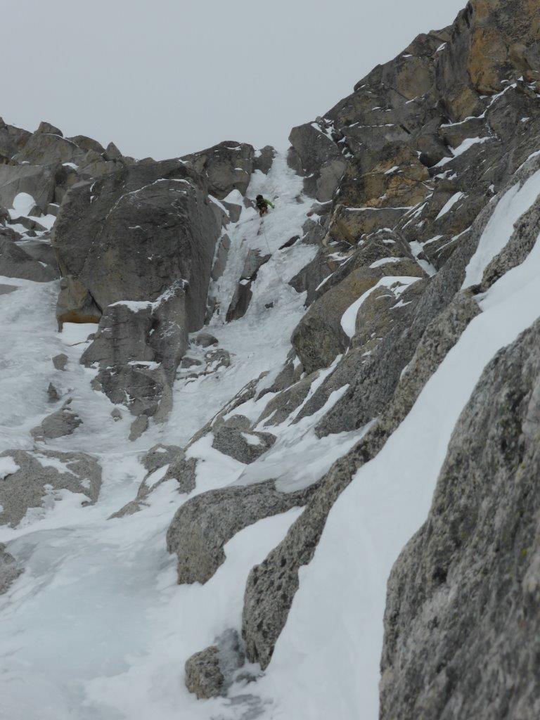 | guidochiarle | La prima lunghezza | guidochiarle | L'attacco della seconda lunghezza | guidochiarle | Paolo si prepara a scendere il canalone di accesso in neve molle