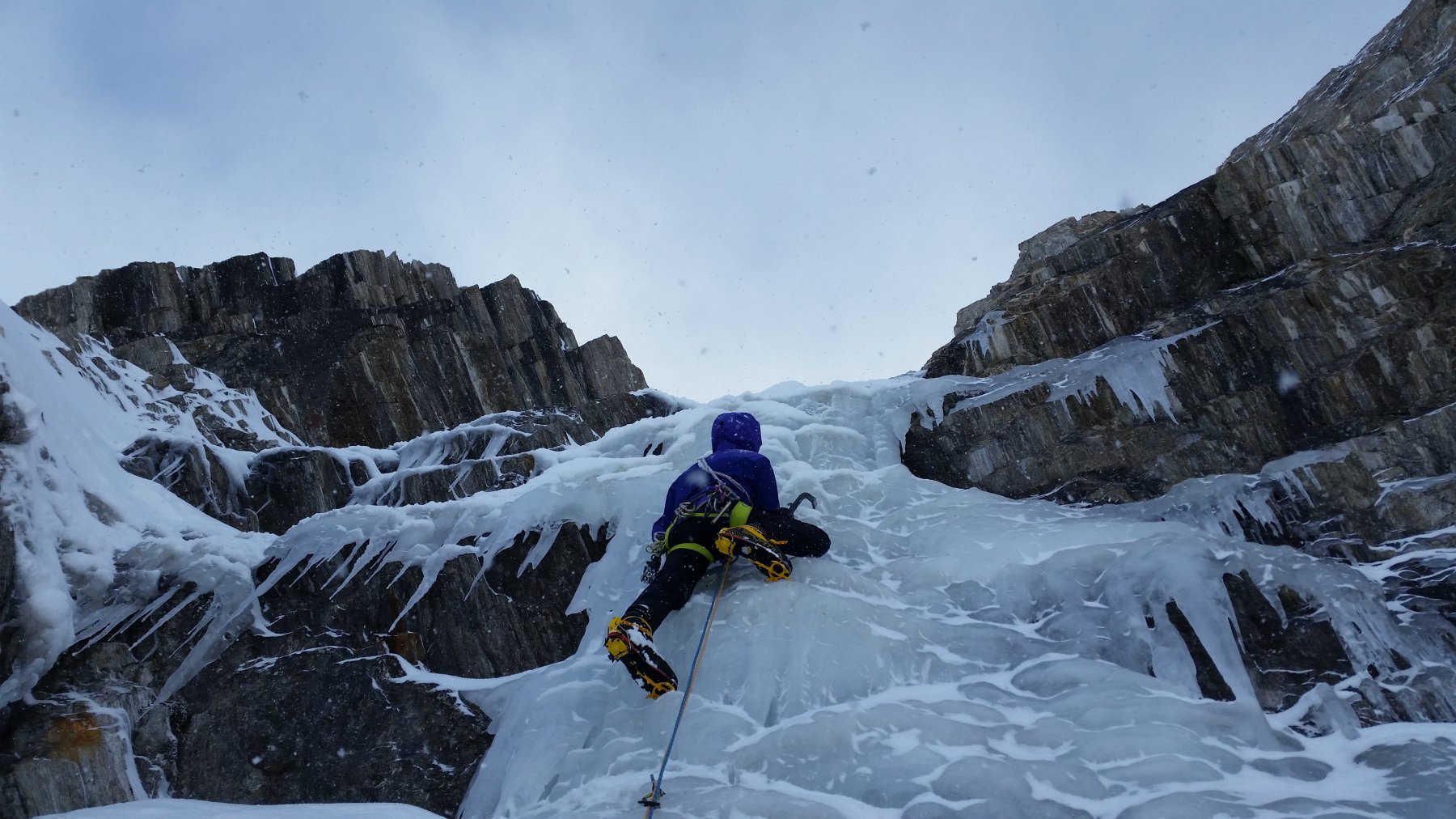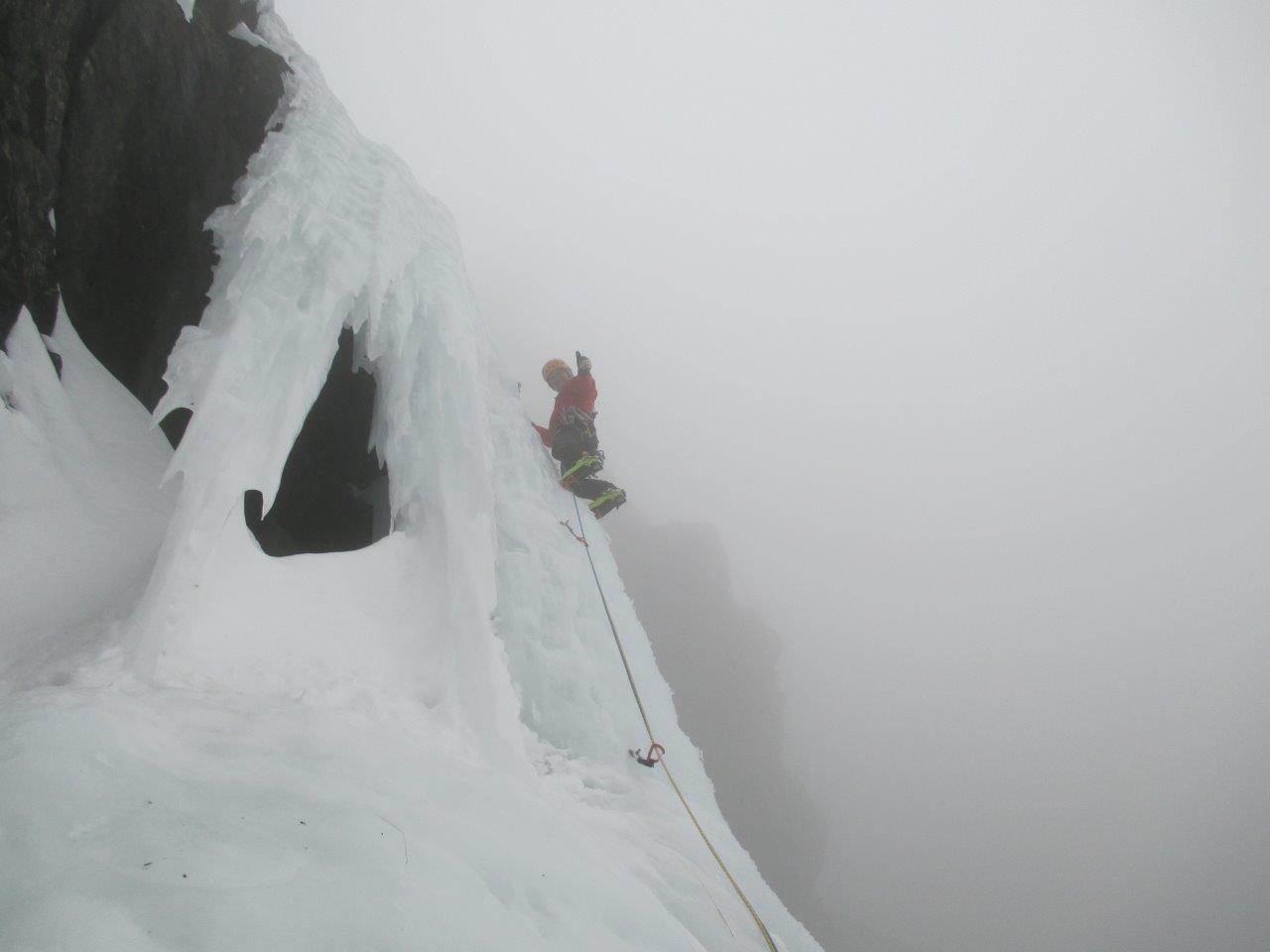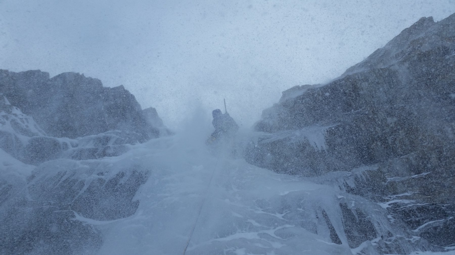 | guidochiarle | La prima lunghezza | guidochiarle | L'attacco della seconda lunghezza | guidochiarle | Paolo si prepara a scendere il canalone di accesso in neve molle
