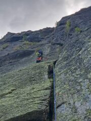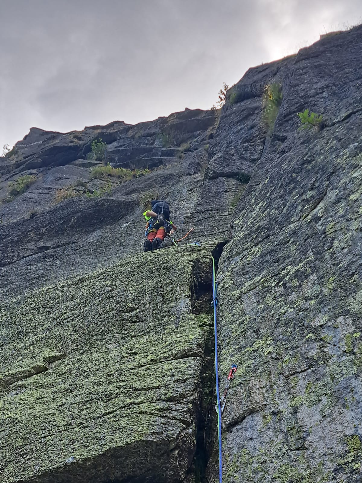 Bella via di stampo "classico" con tutto il repertorio, diedri fessure e placche, un bel concentrato per mettere in atto tutte le tecniche d'arrampicata.