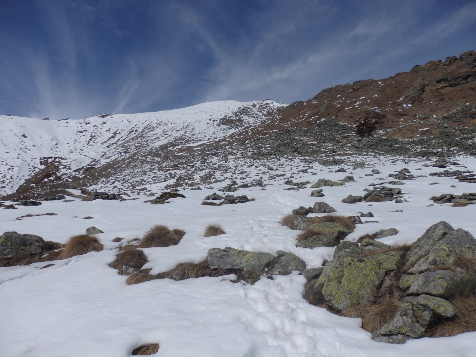 Ancora qualche chiazza di neve dopo l'ultimo alpeggio e prima della cima, facilmente aggirabili.