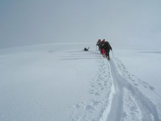 bella gita , gran caldo e molto vento in vetta, peccato per le nebbie perso il gran panorama dalla vetta. in discesa risalito il pendio…