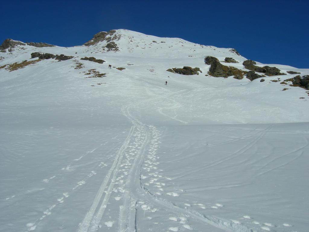 Giornata magnifica sopra le nebbie delle valli. Si sale rapidamente perché il pendio è abbastanza ripido (ma sempre sicuro) e regolare. Siamo saliti dalla cresta a…
