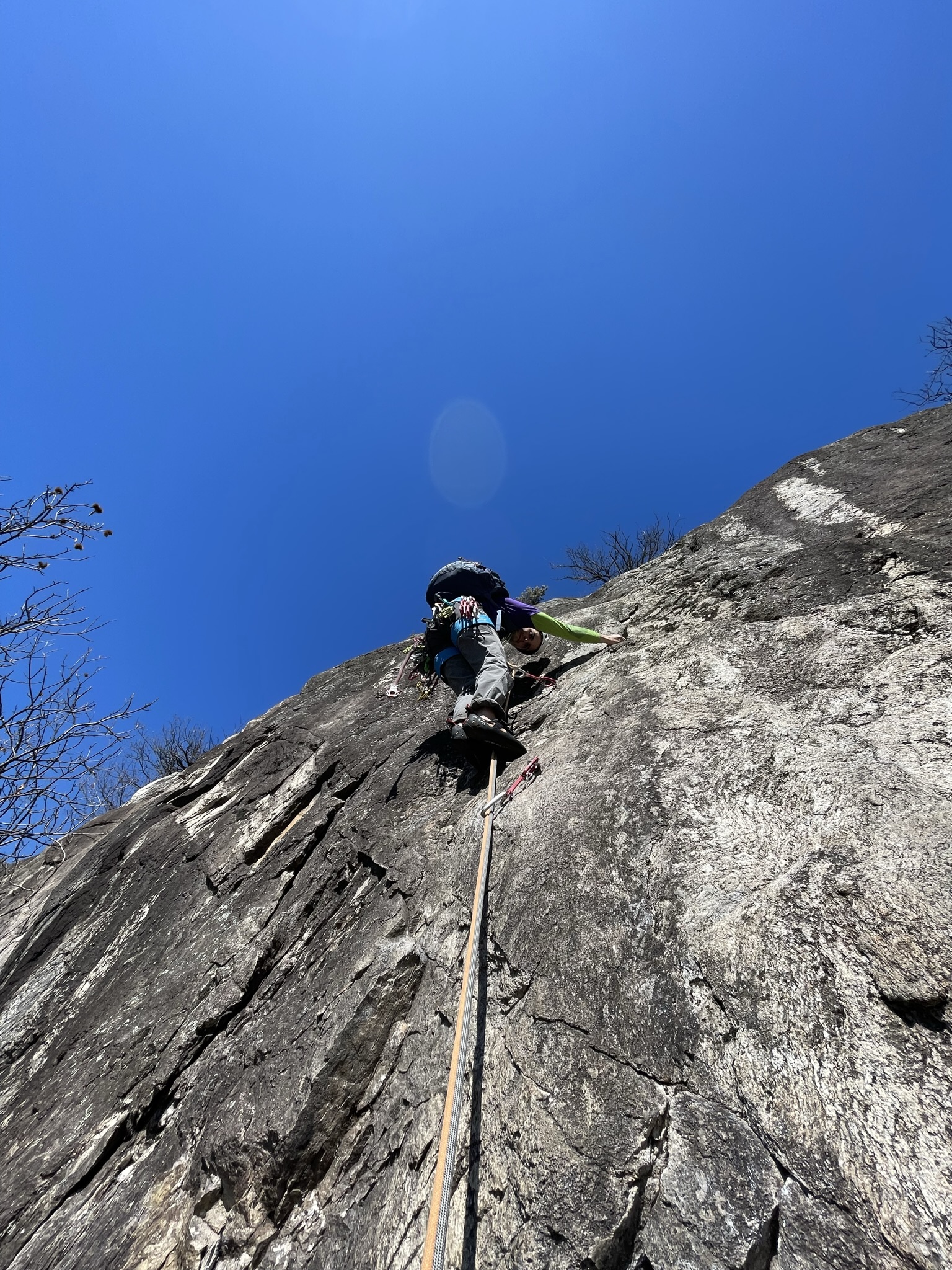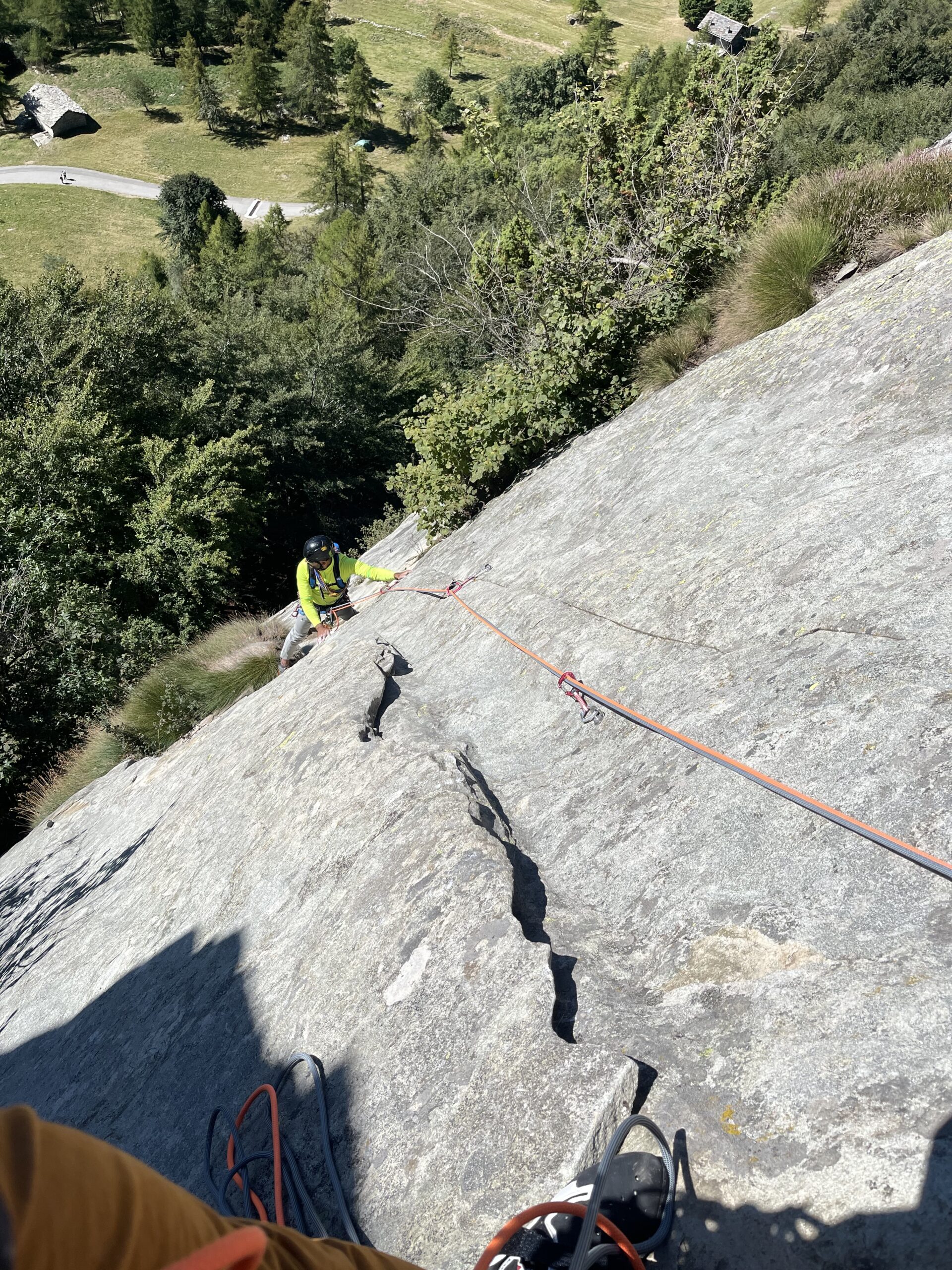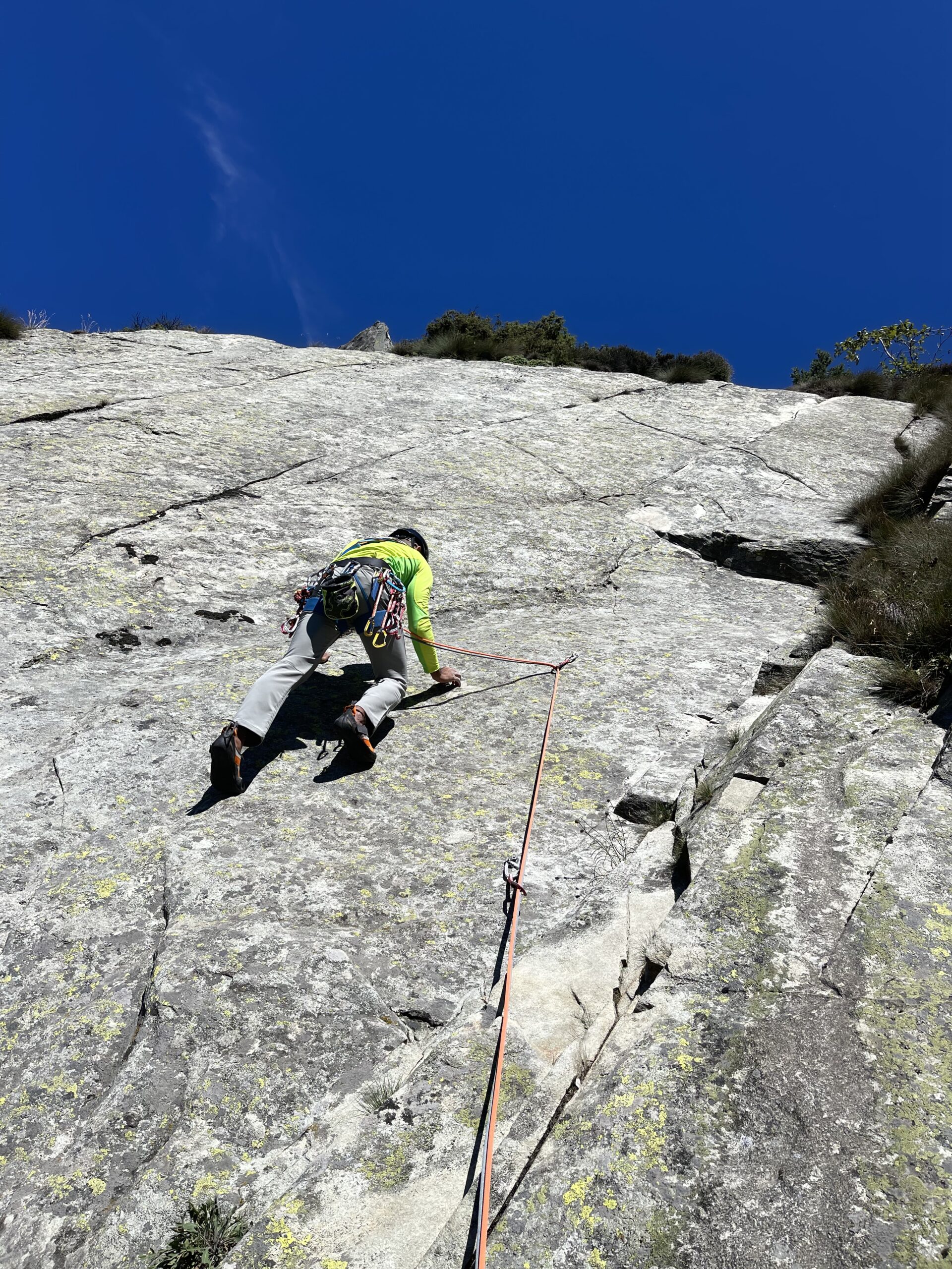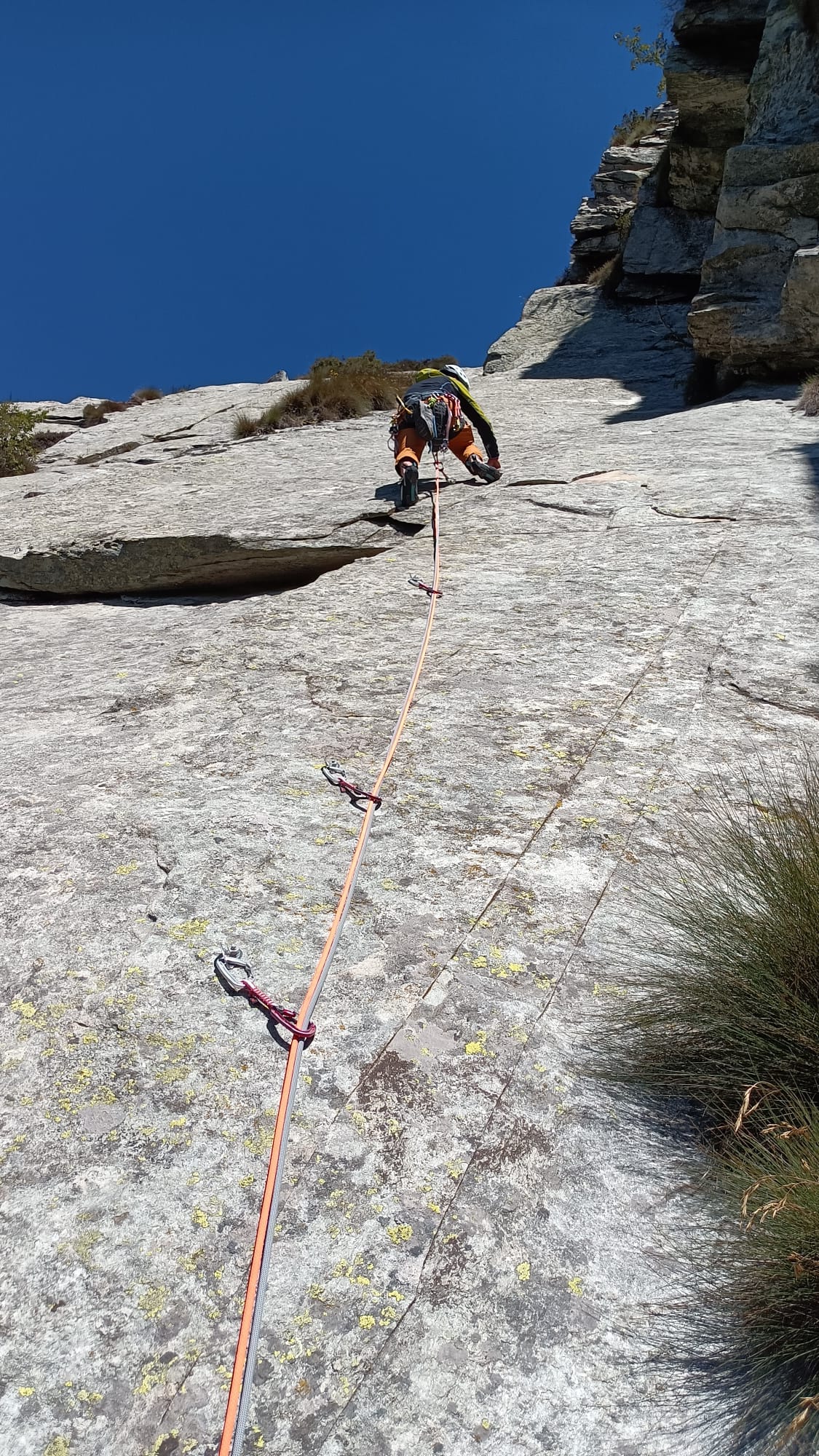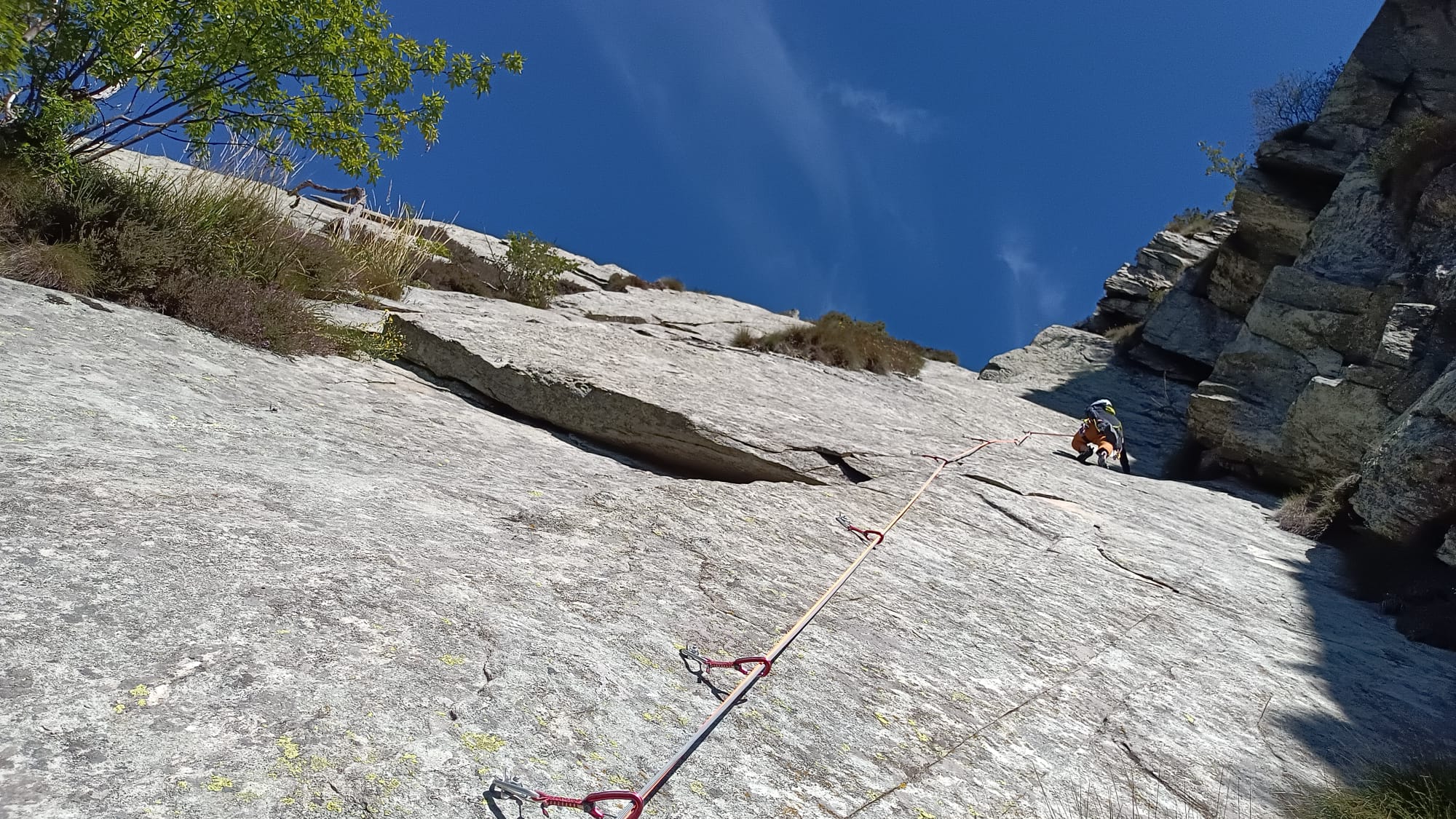 Inizio su roccia molto bella. Continuazione su placca e bombè molto sporchi