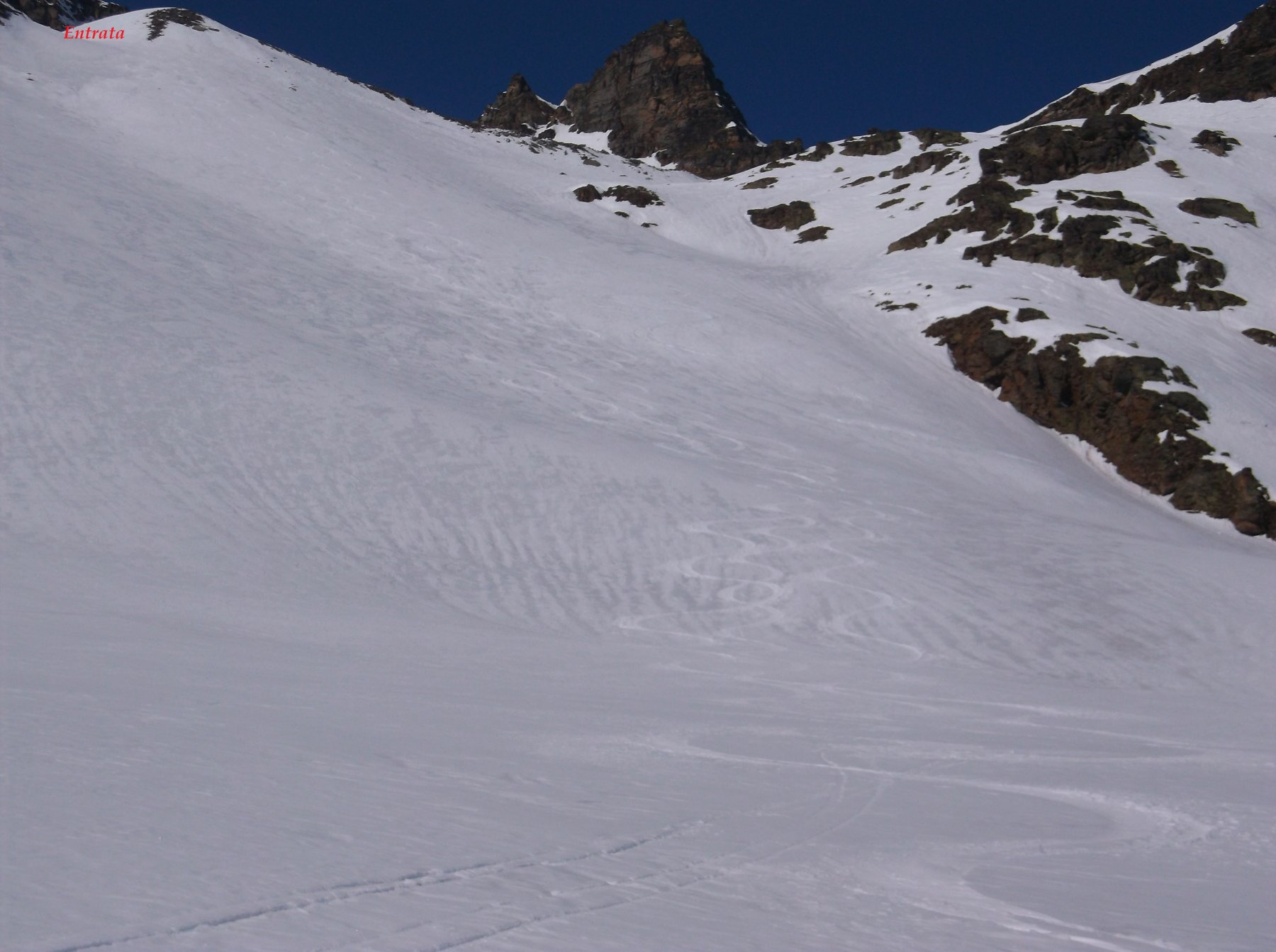 | ivano-oggero | Si calzano sci, dopo tornante. Percorso intuitivo | ivano-oggero | A occhio si può attraversare il lago... | ivano-oggero | NORD EST AIGUILLE | ivano-oggero | ENTRATA 10 mt sotto il palo del colletto | ivano-oggero | Uscita