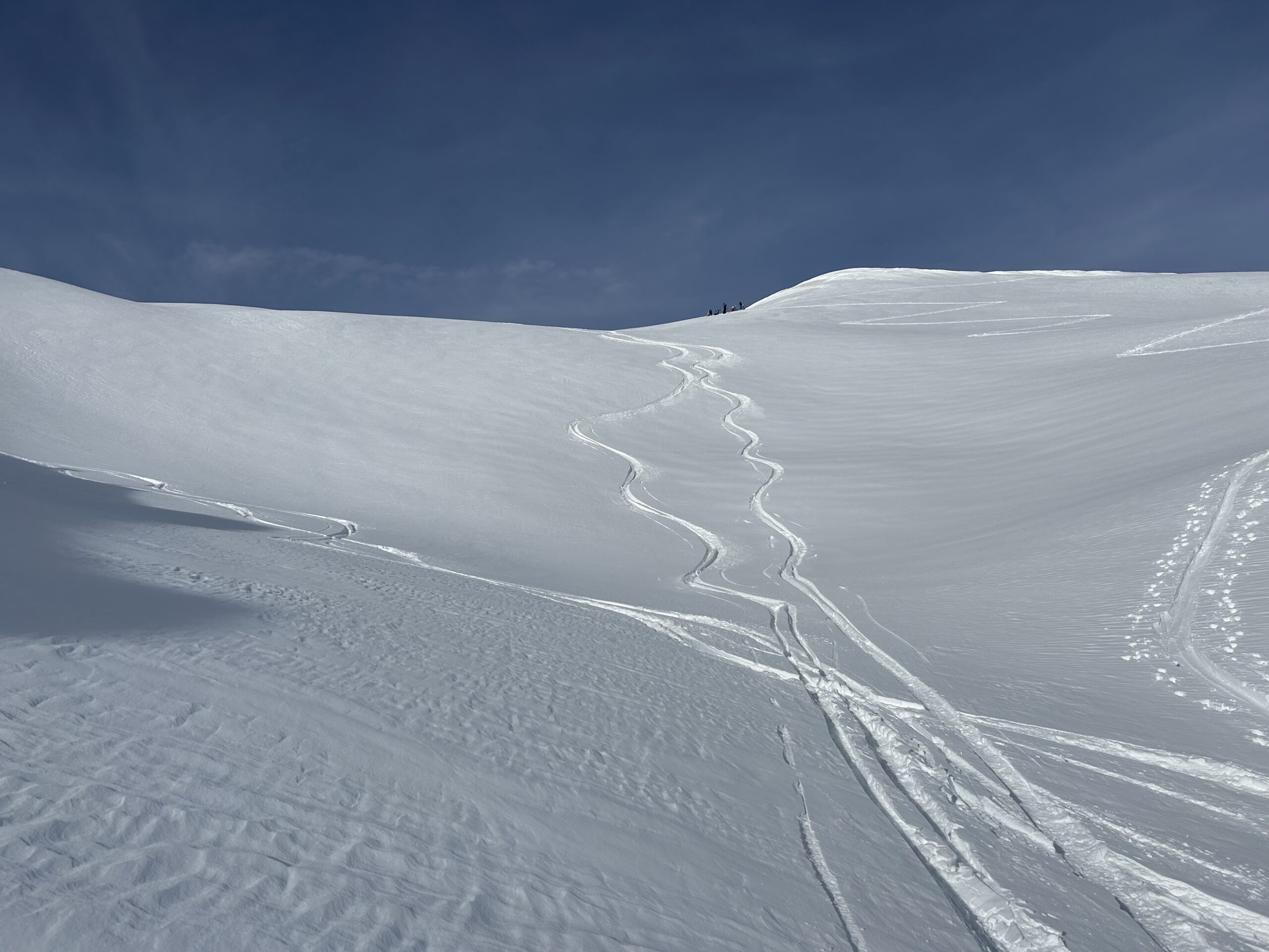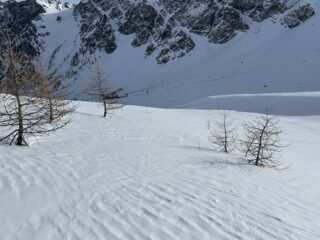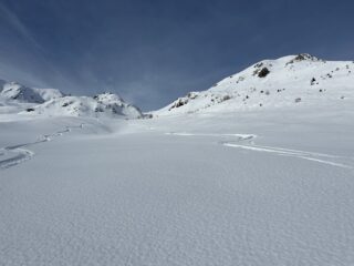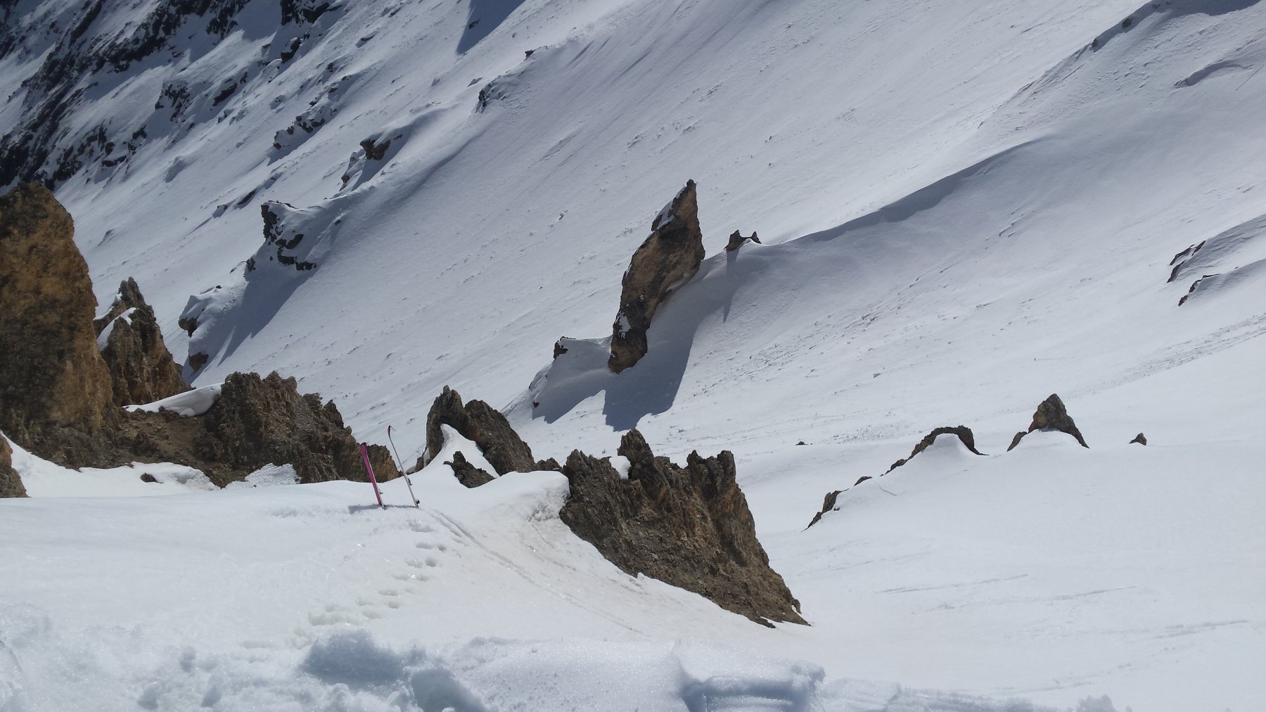 Visto che tutti sono andati al Flassin e che il canale era senza traccie siamo scesi dal canale. Ottima neve. Bello anche sotto
