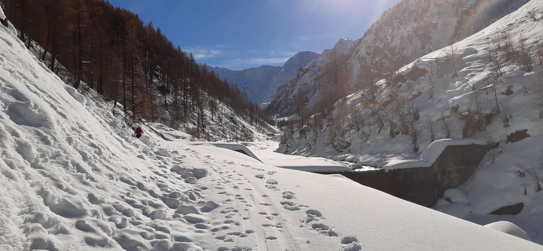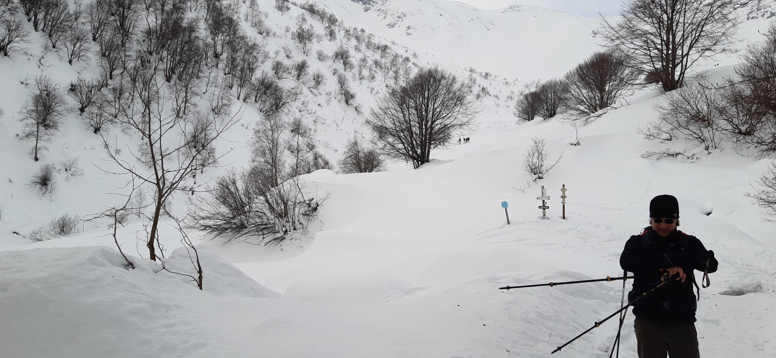 Prima parte passato a fianco pista sci di fondo. Seconda parte battuto traccia , neve sfondosa fatica incredibile,fortunati gli ultimi .