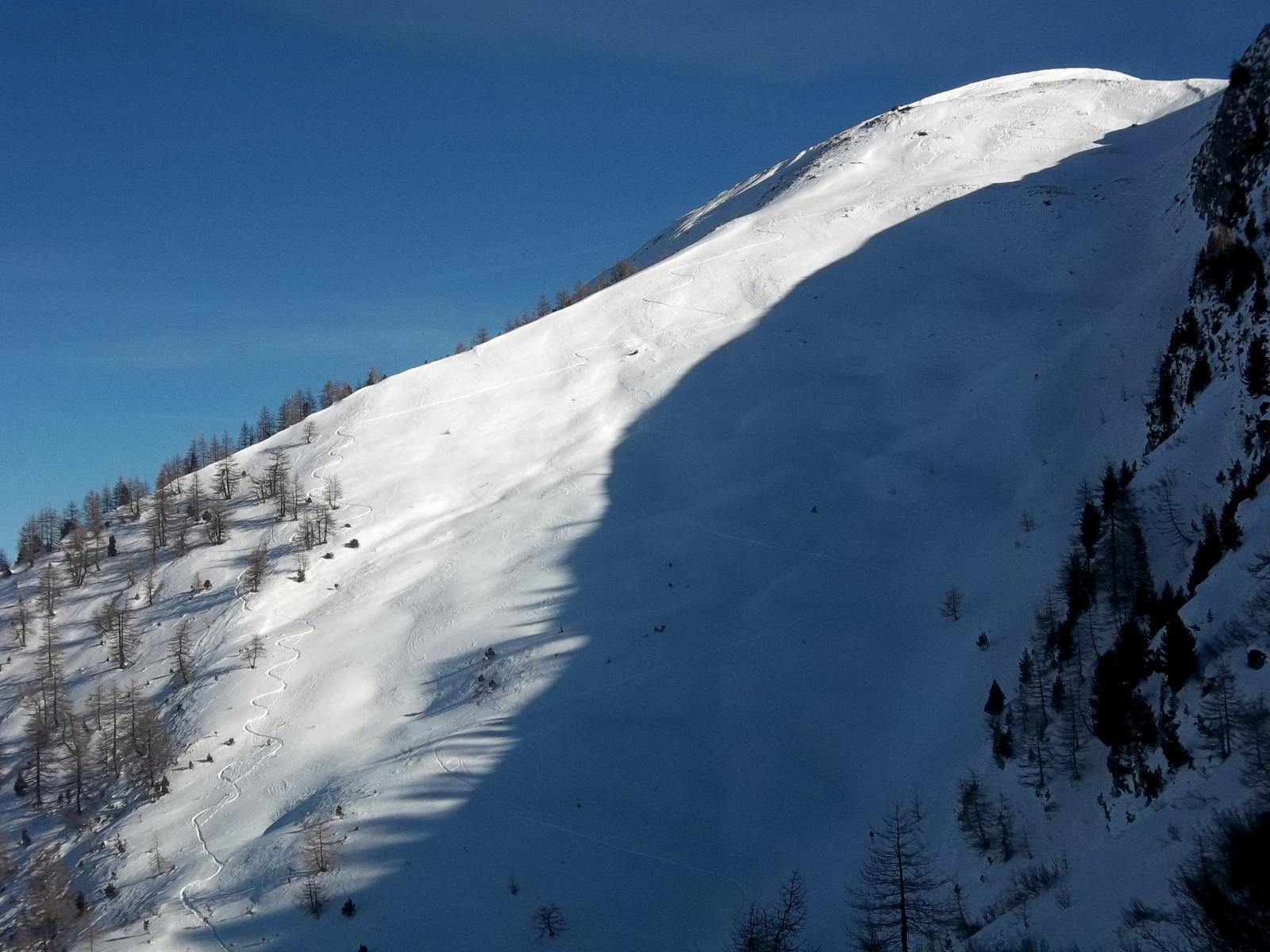 Trovare un luogo senza tracce su una frequentatissima montagna è ancora possibile,tuttavia bisogna “leggere” il pendio e con un po di fortuna si può ancora…
