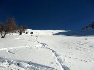 Direi itinerario azzeccato!Oltre al non trascurabile privilegio di non trovare nessuno… primo perchè si è partiti sci ai piedi,secondo,perché dai duemila abbiamo trovato tanta…