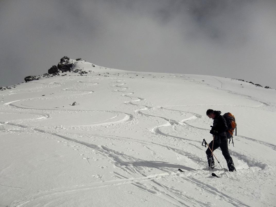 Colto il momento giusto,salire il Birrone da san Maurizio è sempre un’azzardo,a volte sulla costa manca la neve e più delle volte si ritorna indietro…