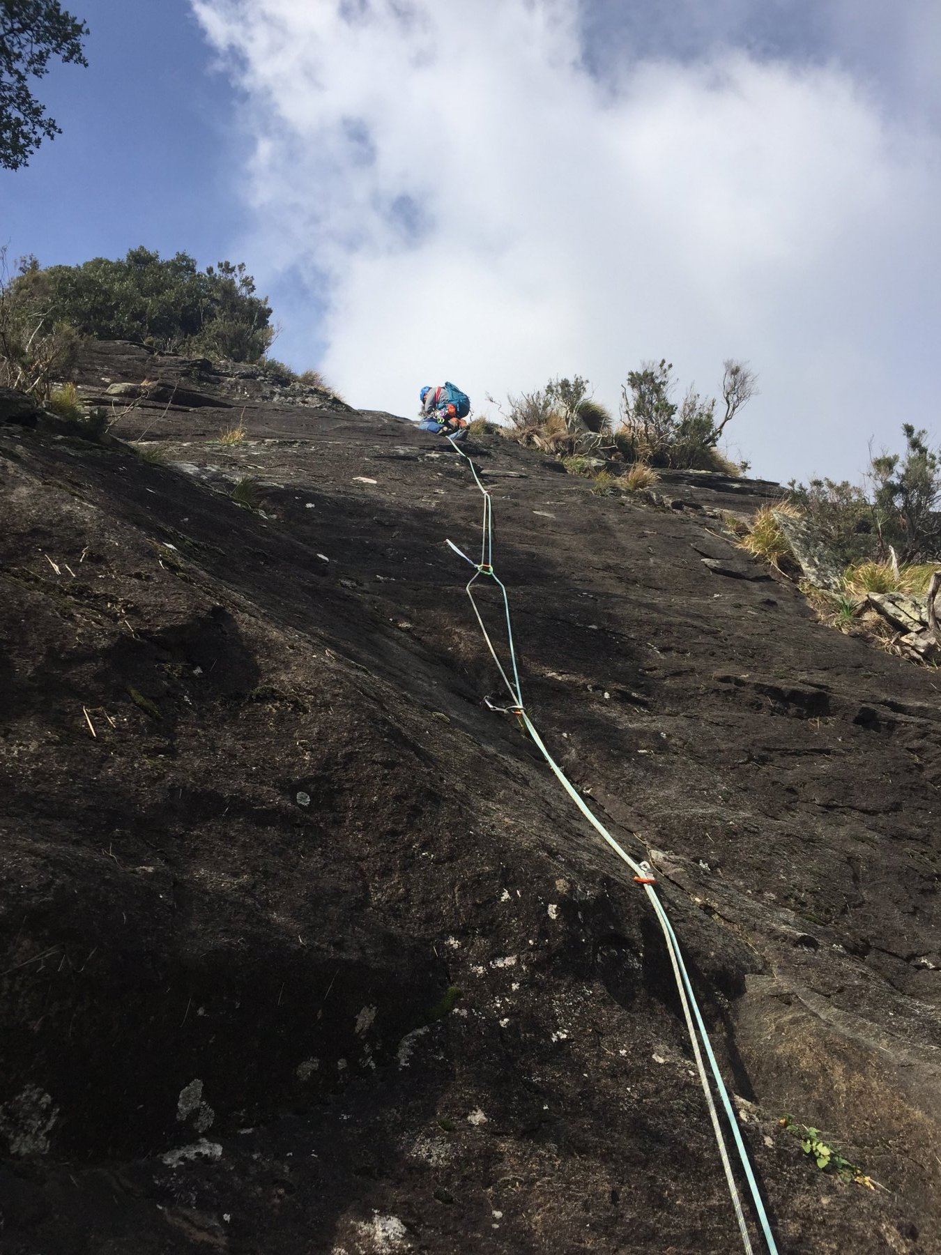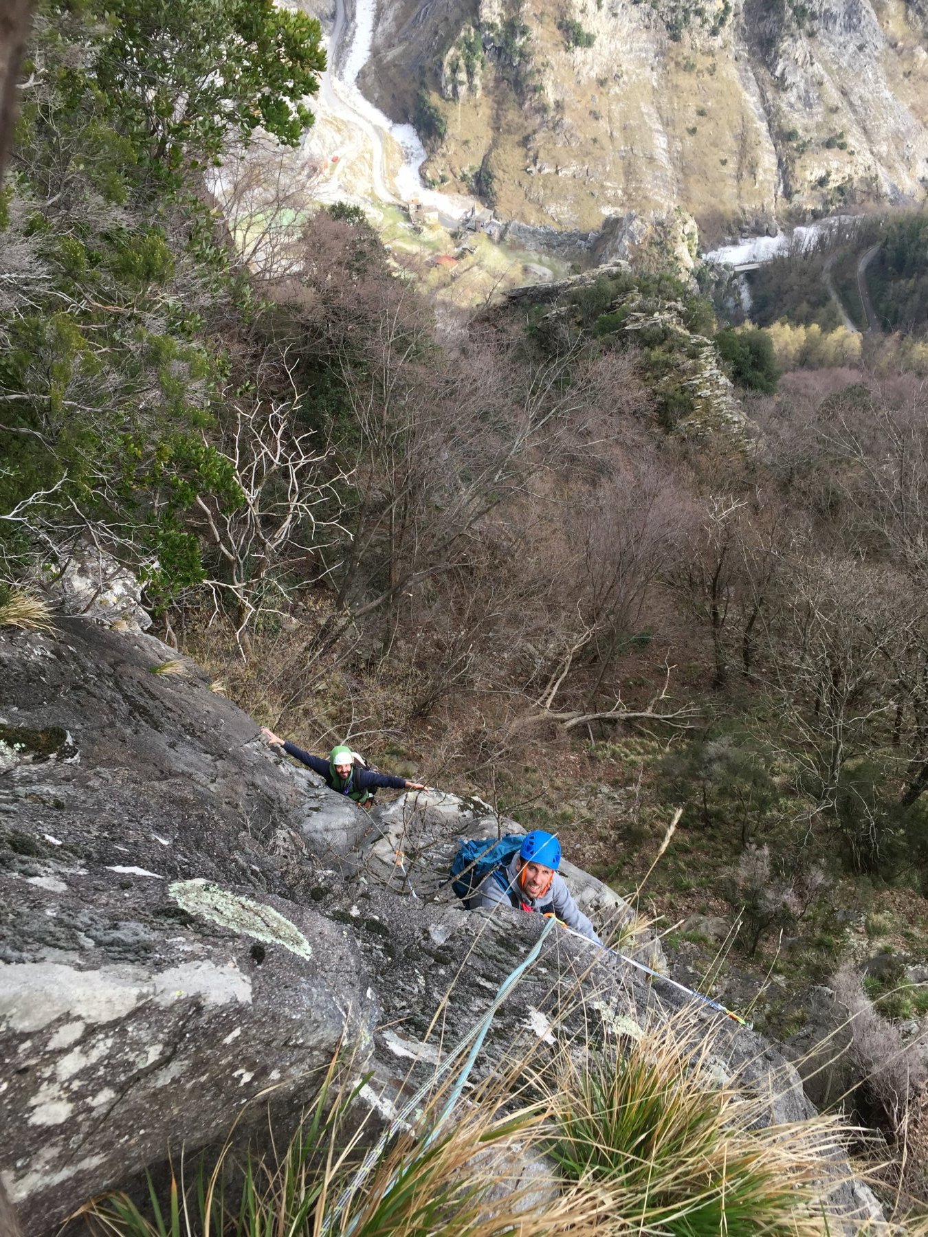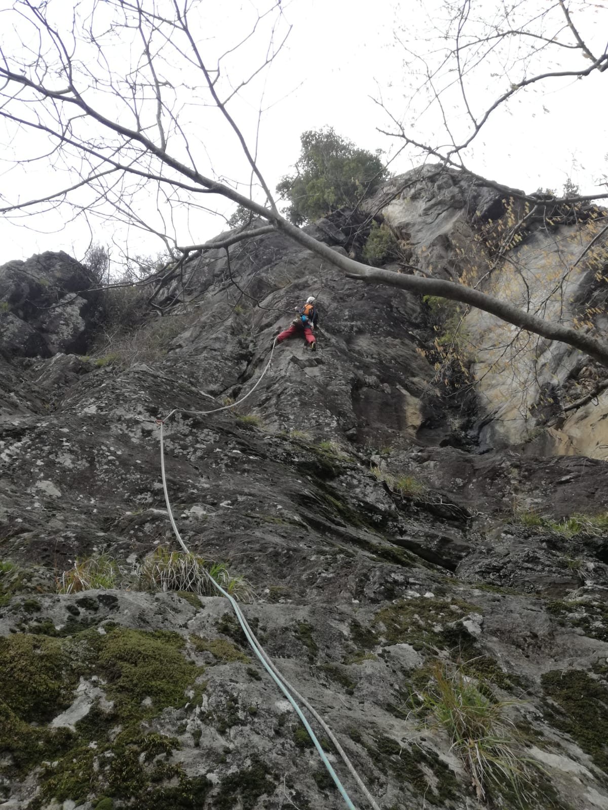 Eccetto il primo tiro un pochino sporco e dove la vegetazione sta piano piano riappropriandosi della parete abbiamo trovato il resto della via pulito. Il…