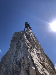 Via estetica in ambiente stupendo. Soste a prova di bomba e qualche chiodo qua e là, possibilità di integrare con friend. La roccia è buona…