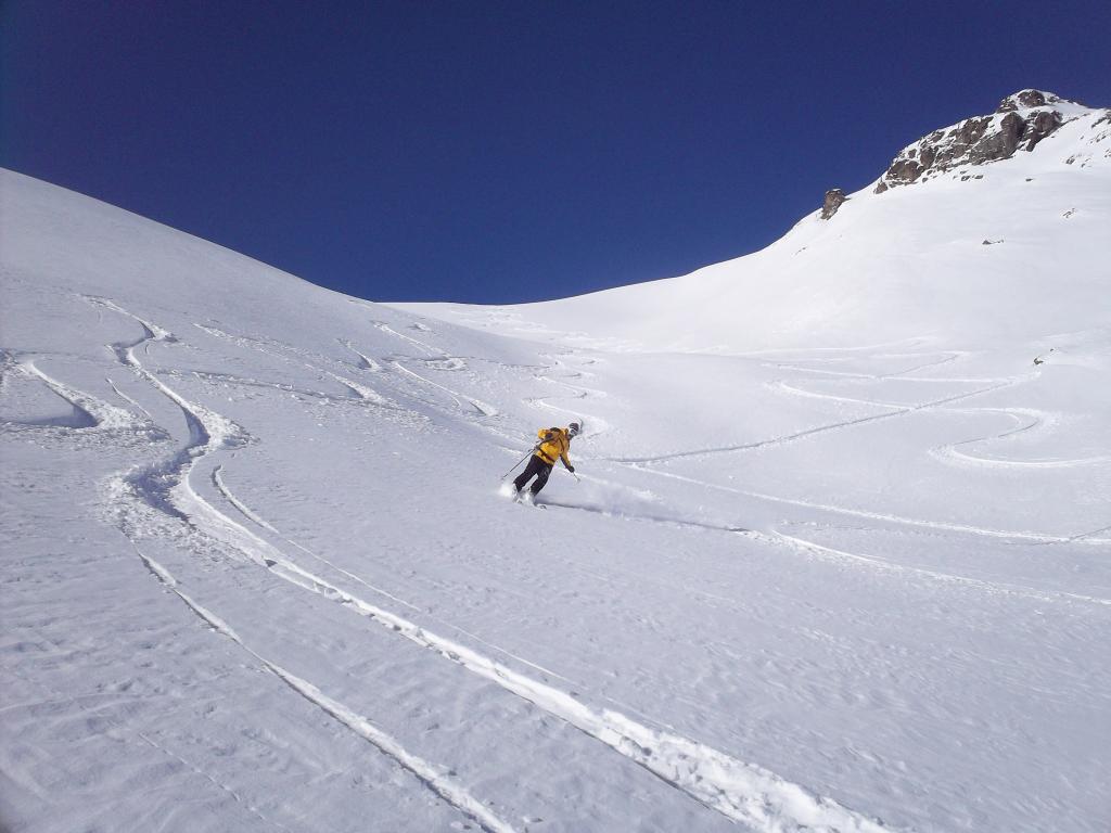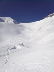 Partiti tardi, traccia perfetta in salita (rigrazio chi e' passato prima di noi) , 10 cm di polvere nella parte bassa, forse 20cm in alto,…