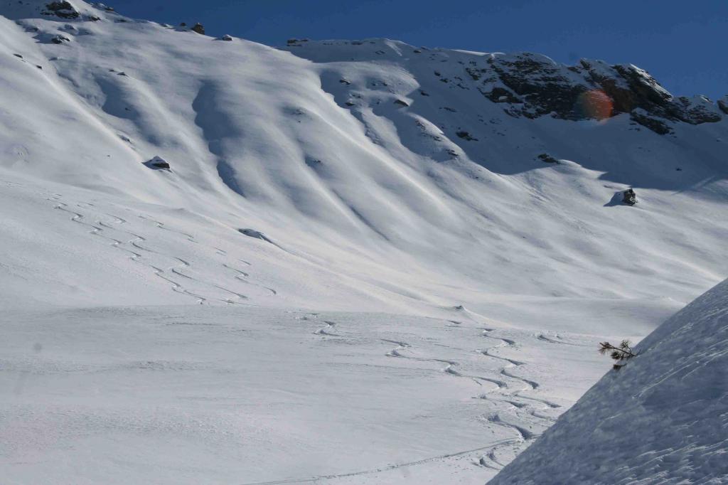 | lakota | Il firn a metà | lakota | Prime curve, sulla vetta | lakota | Il canale prima della discesa | lakota | Le prime splendide curve | lakota | Canale finale con le valanghe | lakota | GRIVOLA!