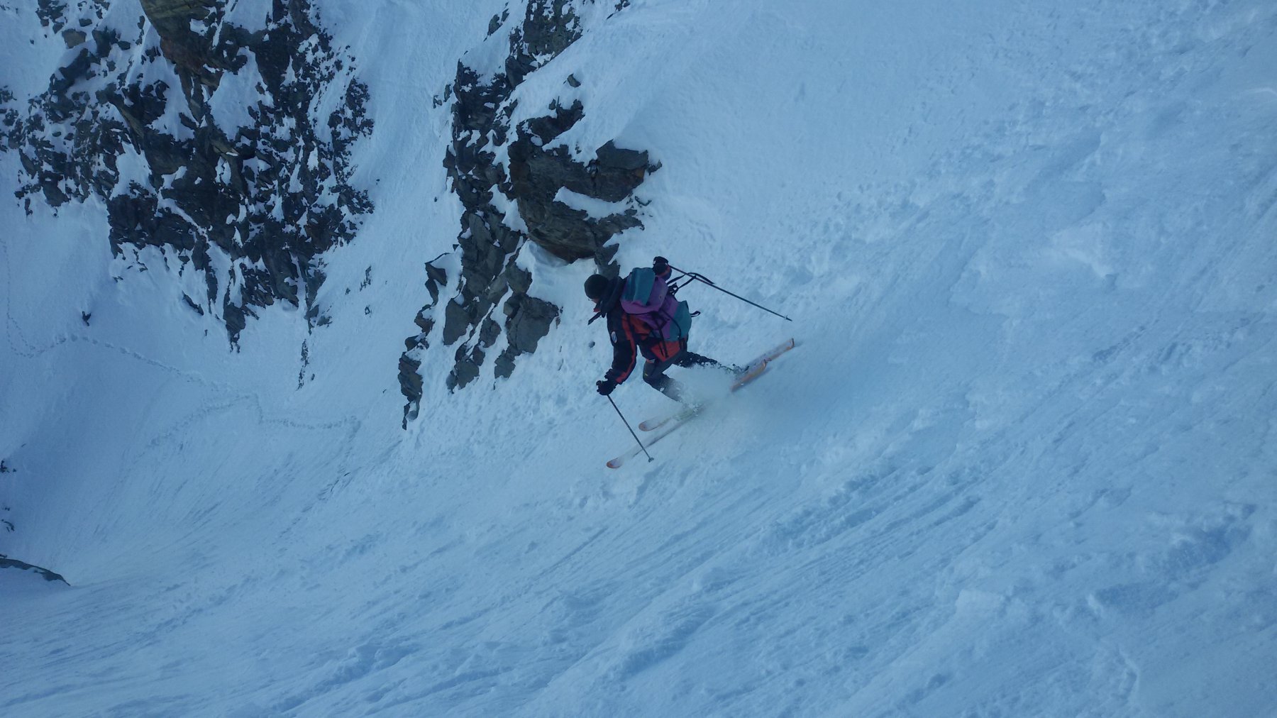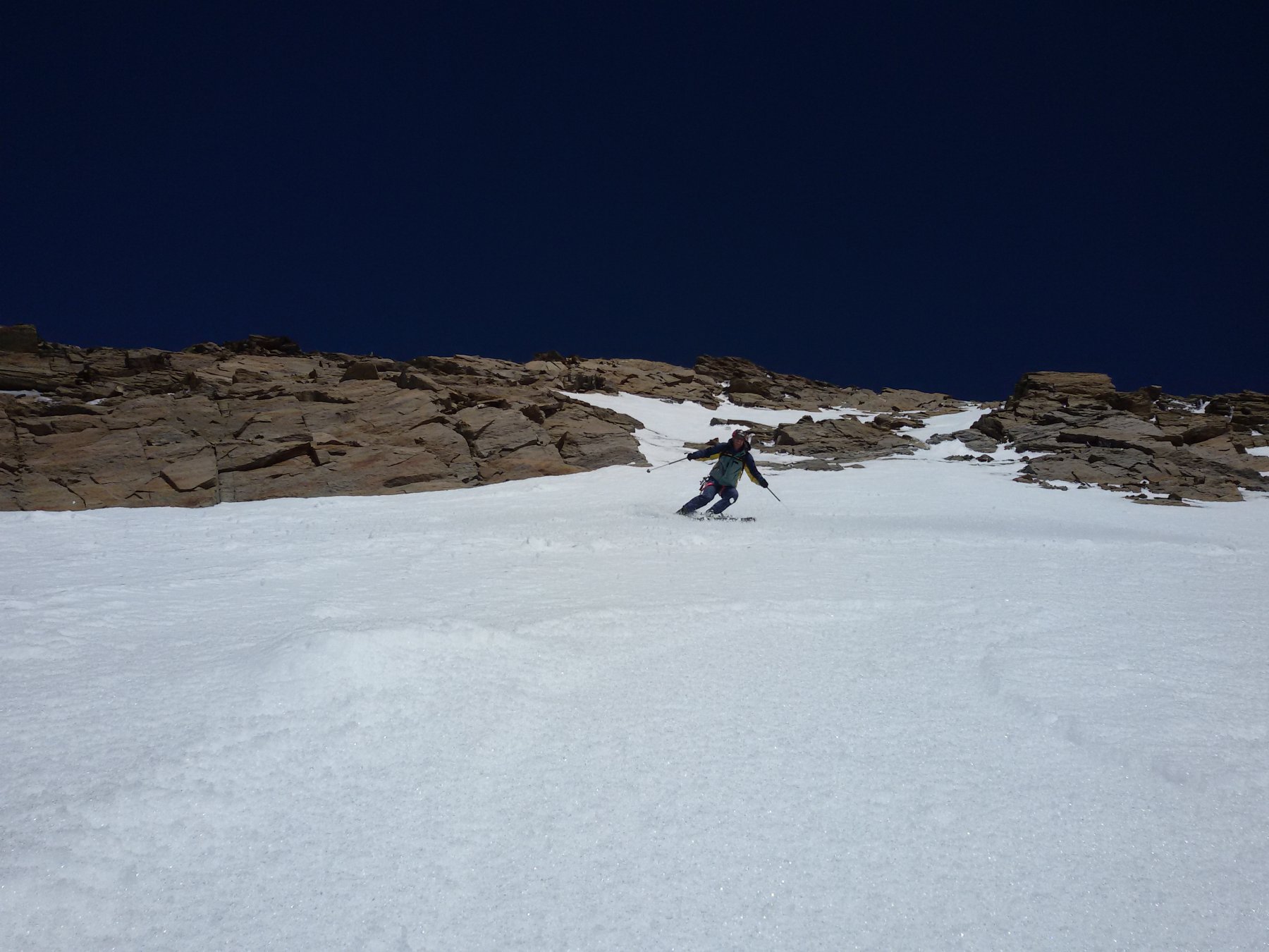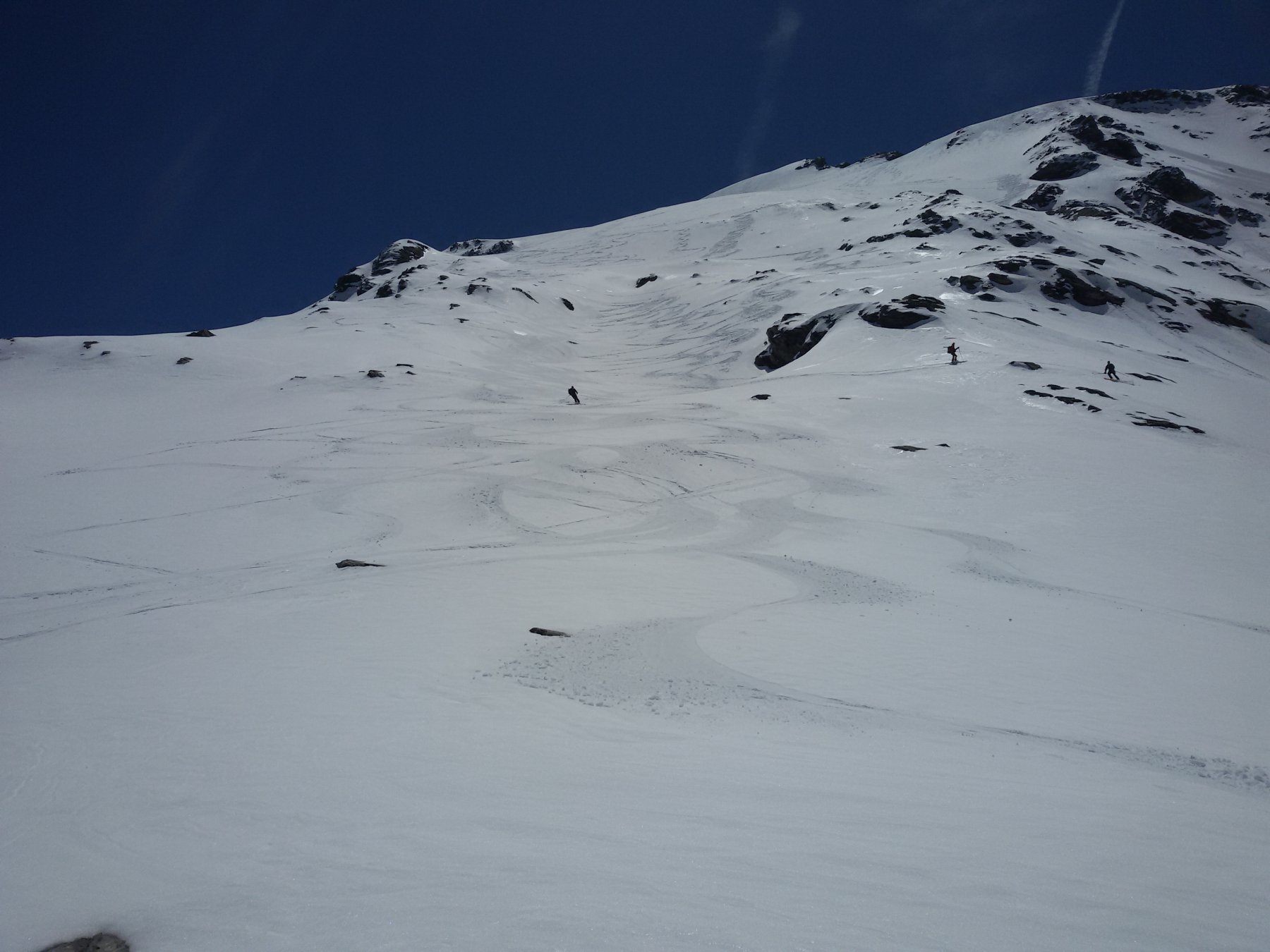 | lakota | Carlo e il primo salto | lakota | ingresso nel canale | lakota | A metà parete, sul pendio sospeso | lakota | menu di giornata...vincent e giordani | lakota | La parete appwna scesa vista dalla giordani