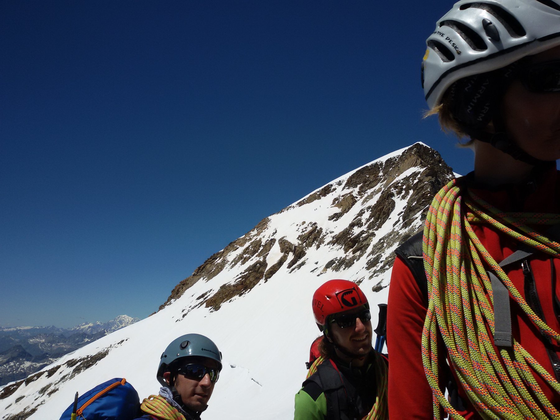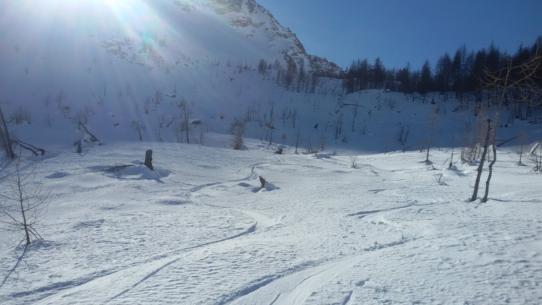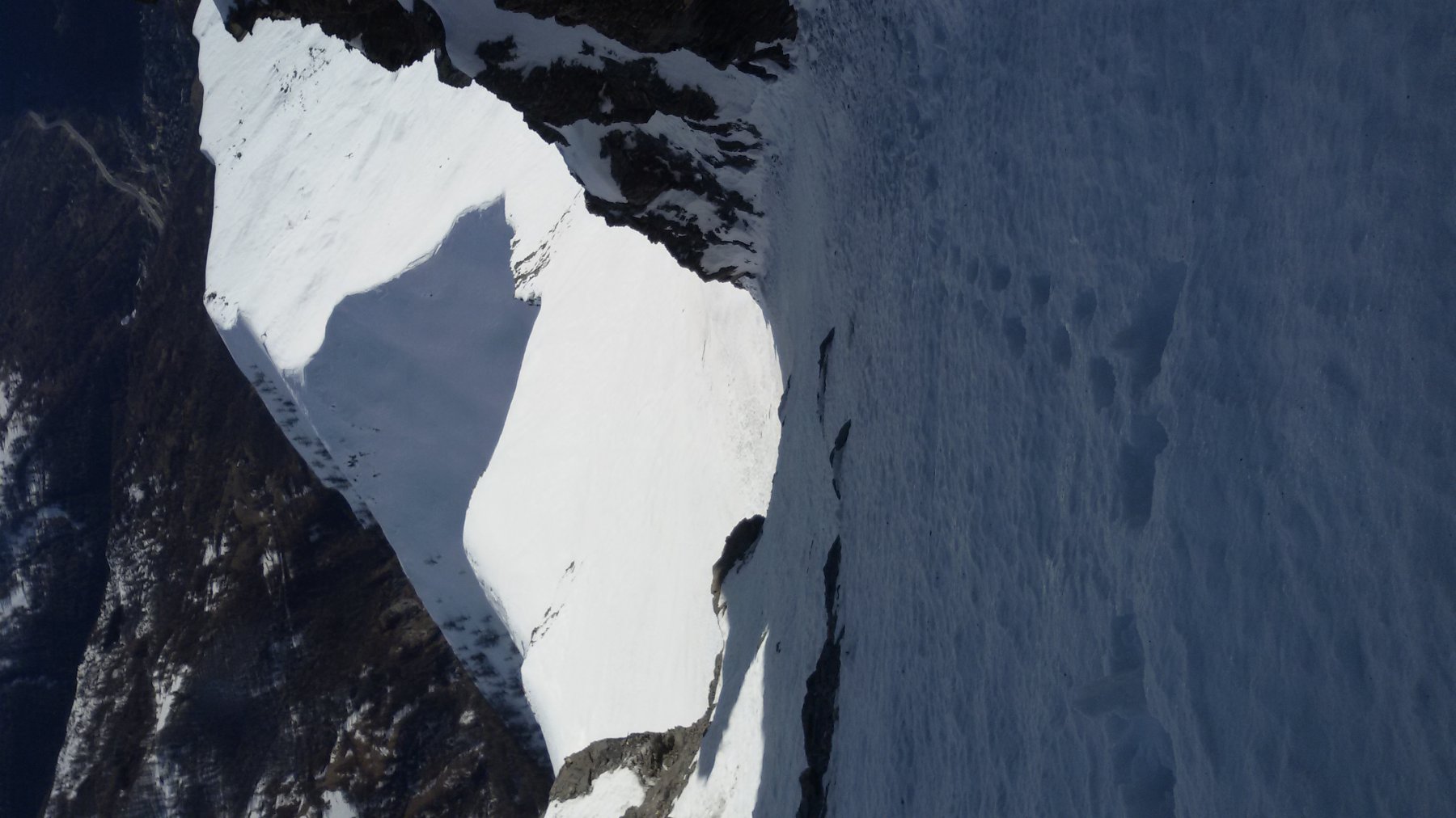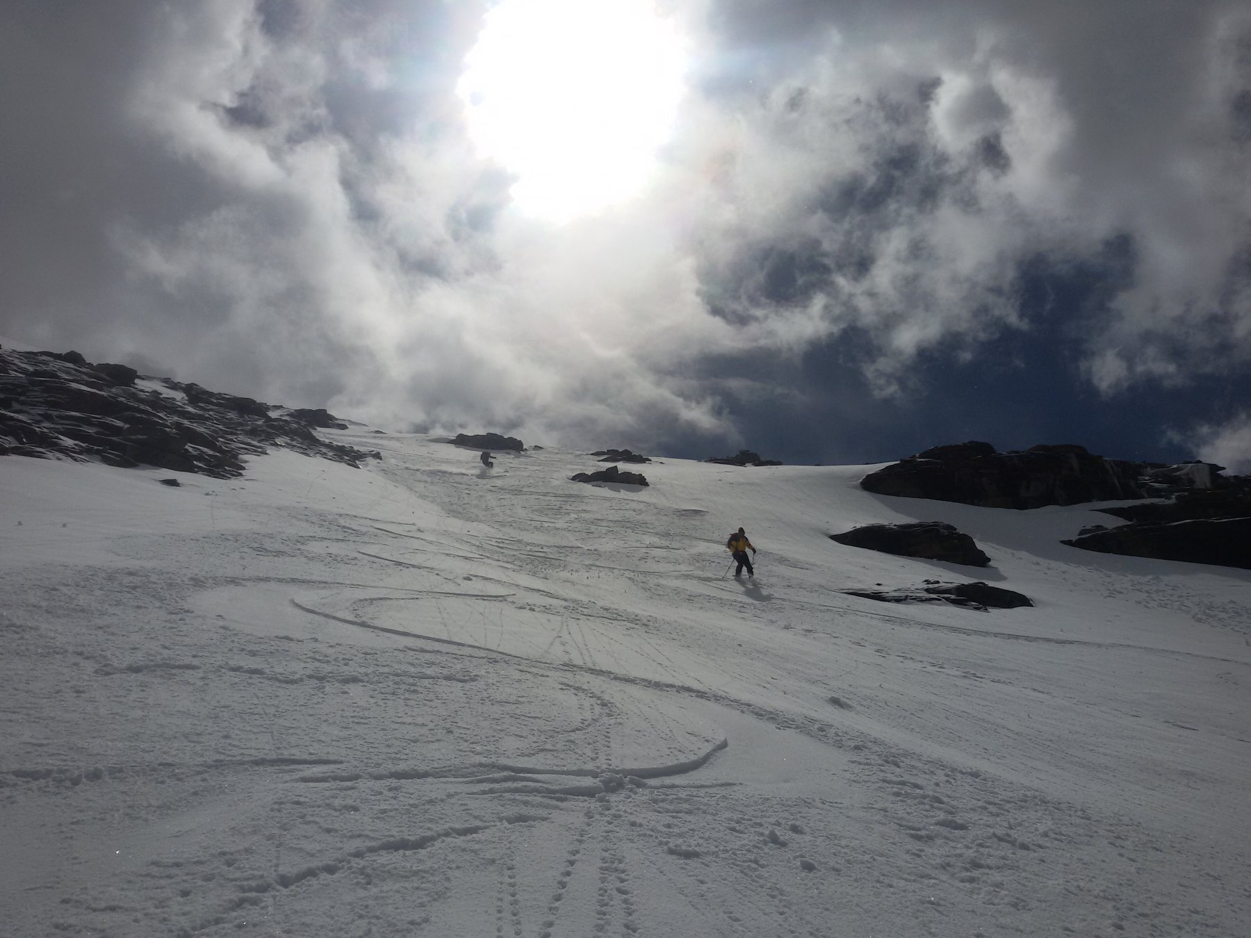 | lakota | Carlo e il primo salto | lakota | ingresso nel canale | lakota | A metà parete, sul pendio sospeso | lakota | menu di giornata...vincent e giordani | lakota | La parete appwna scesa vista dalla giordani