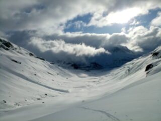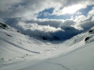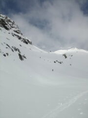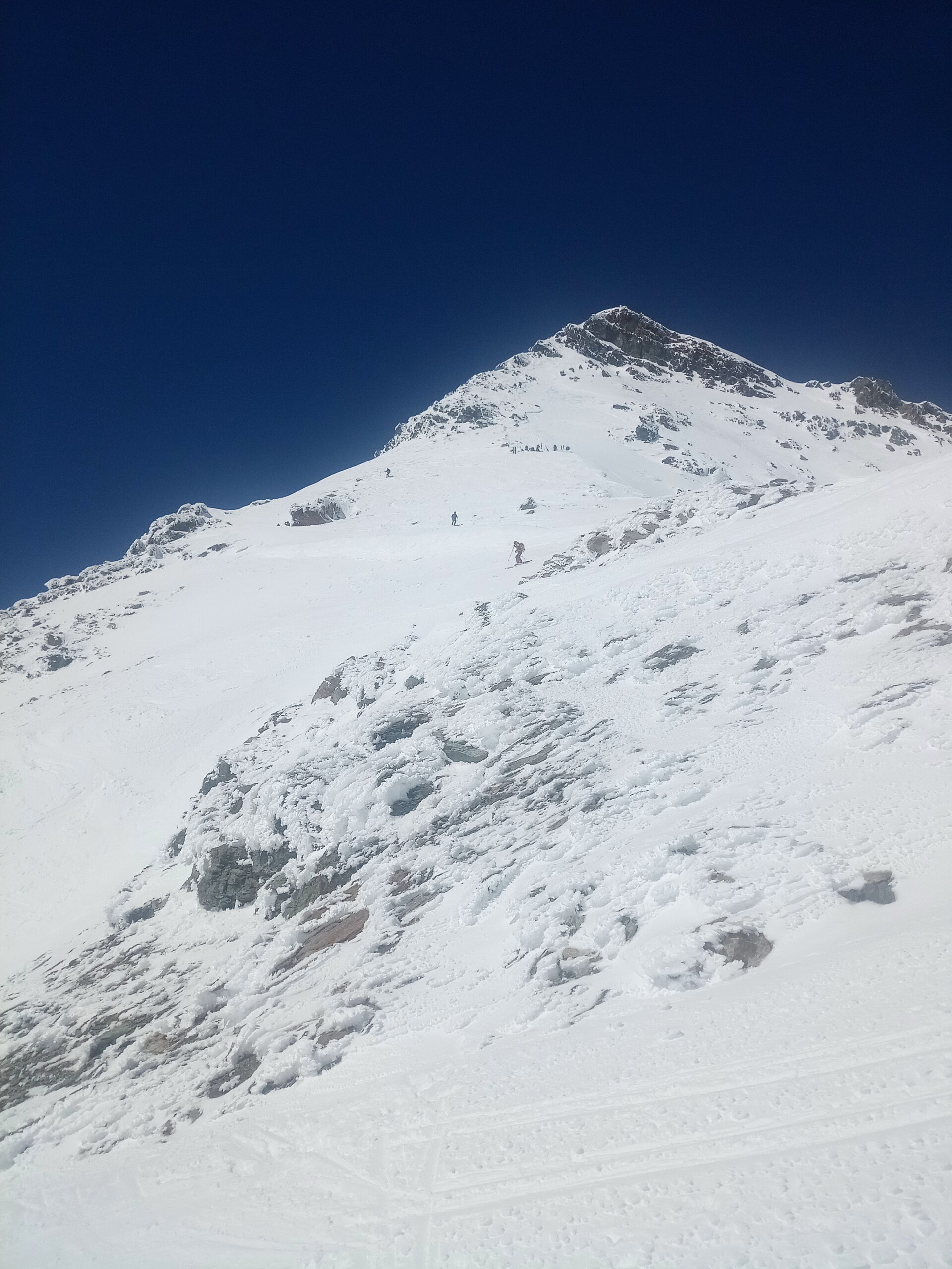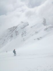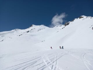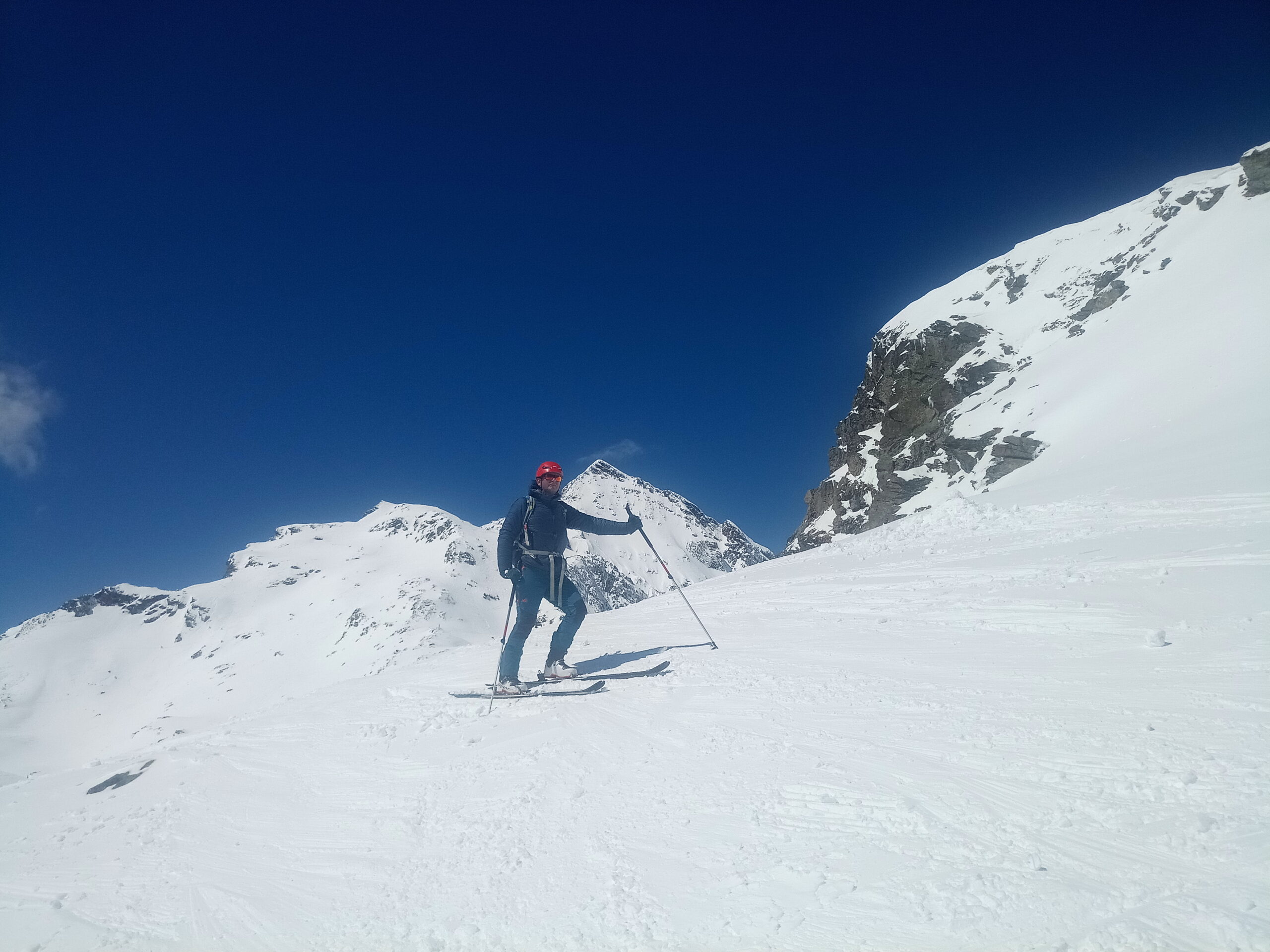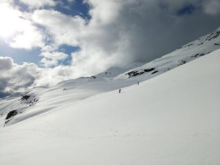 Partiti alle 8 dal passo (-2°) con buon rigelo. Itinerario frequentato. Neve marmorea per 200m che lascia spazio a farina compatta. Traversi ok. Si arriva bene…