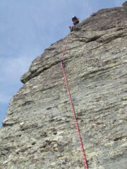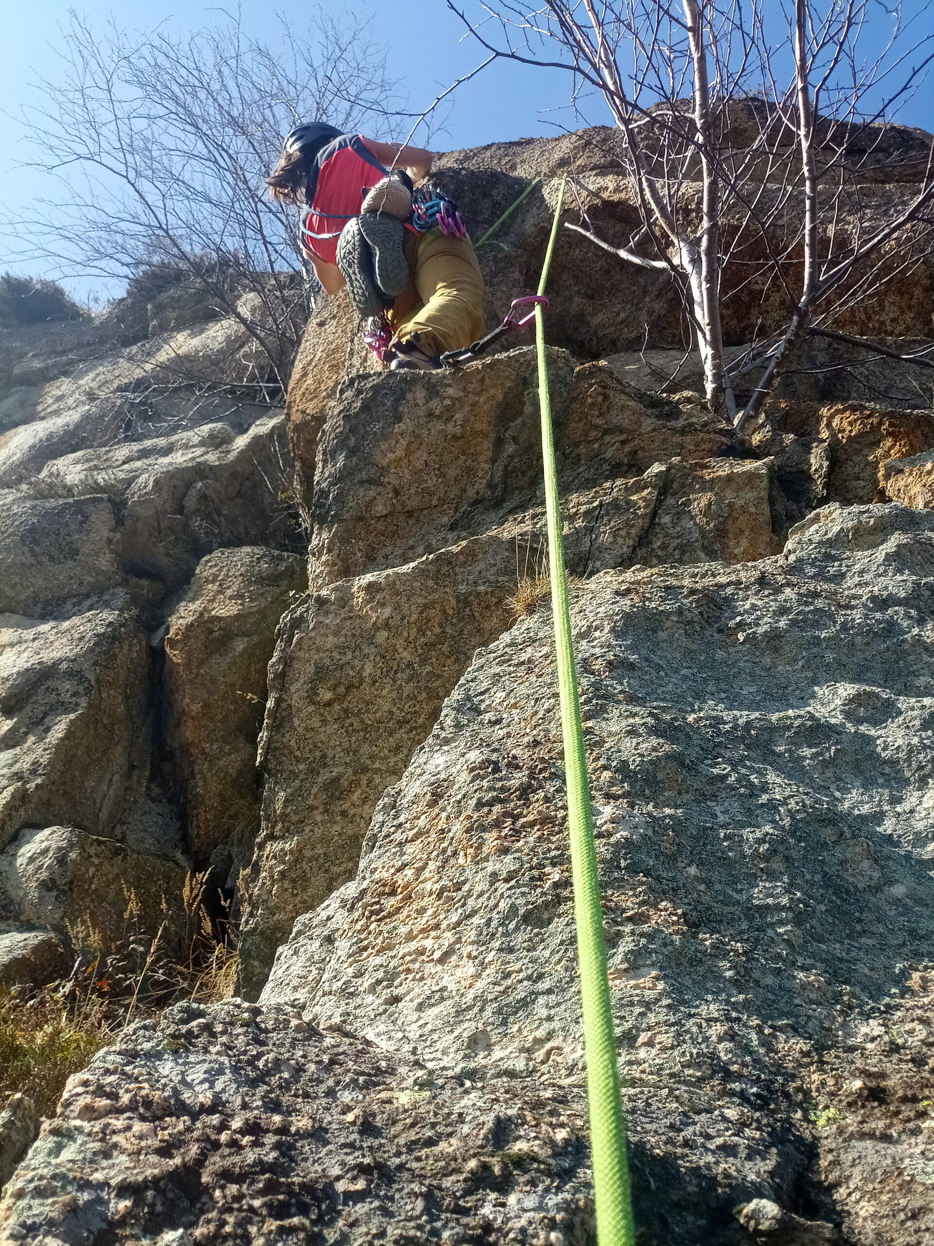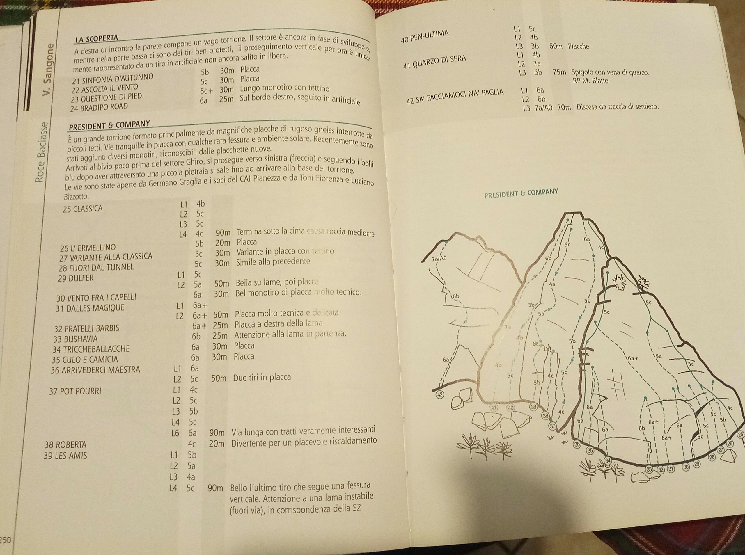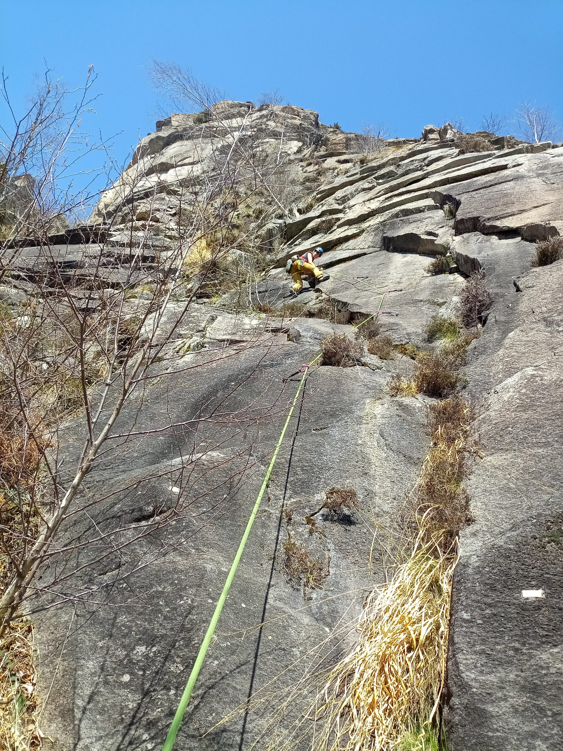 Ambiente bucolico con ricca fioritura e freschi torrentelli. Via logica, ben chiodata, alterna Spit a chiodi, volendo integrabile con friend medi. Abbiamo usato due mezze, alcuni tiri…
