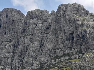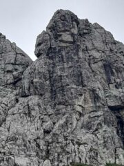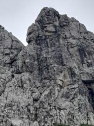 Via salita provenendo da "Fedeli alla linea" con breve spostamento per cresta e discesa verso dx sino a raggiungere la base della parete. Bella via…