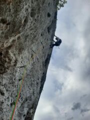 Piacevole giornata con gli amici, alcuni storici, di arrampicata per scambiarci gli auguri di buone feste. Falesia solare e al riparo dal vento. Roccia praticamente…