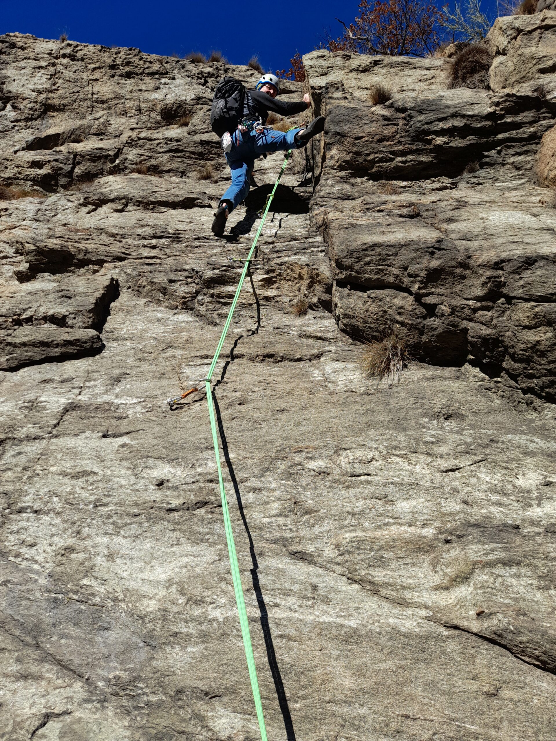 Su "Sua sorella" settore "Sipario" nella parte alta del tiro, quando le difficoltà diminuiscono, un resinato si muove. Attenzione! Ad ora nella zona dei picchi…
