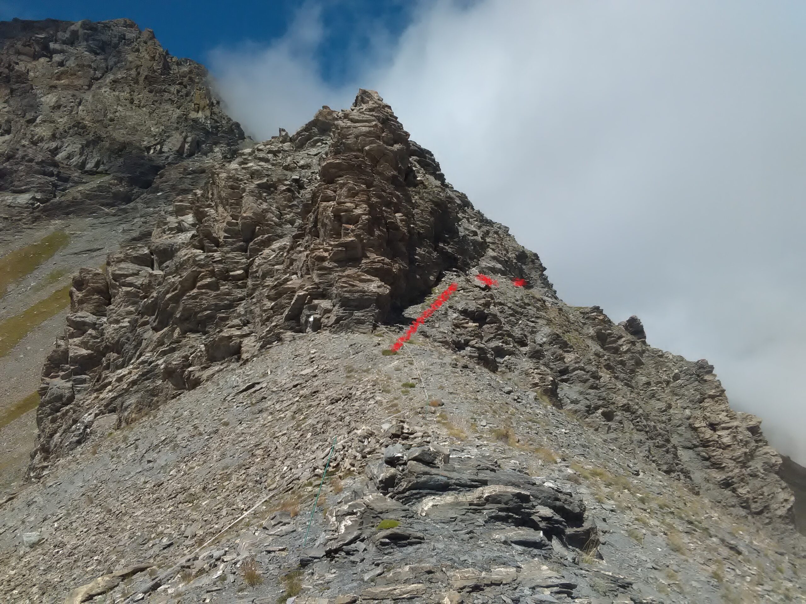 | lonely_troll | Inizio salita dal colle | lonely_troll | Sopra lo sperone si vede la traccia | lonely_troll | Traverso | lonely_troll | Tratto in frana | lonely_troll | Sulla cresta | lonely_troll | Percorso dalla cima