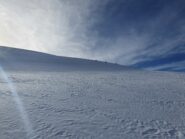 Neve poca. Ma si sapeva... In alto comunque facendo attenzione alle pietre affioranti specialmente sulle dorsali si scia bene, anche se la neve è molto lavorata…