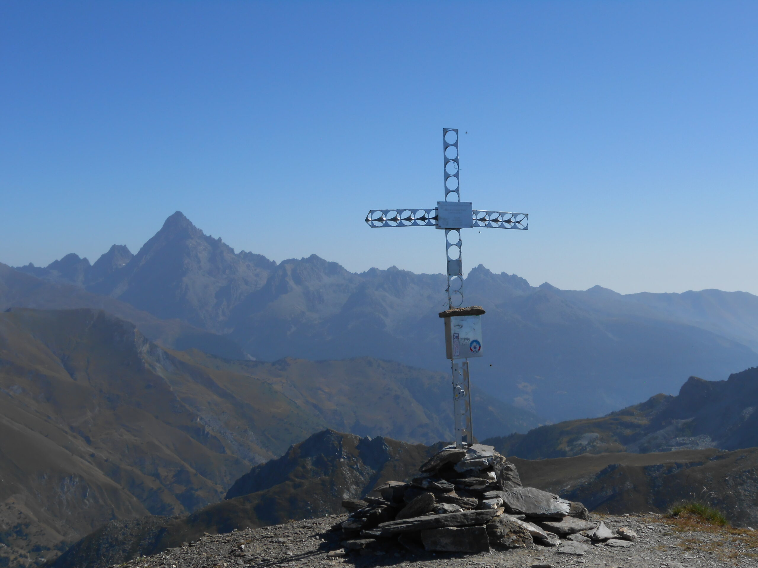 | lorenzovolpe | Tavola d'orientamento sulla cima | lorenzovolpe | Nuvole sulla valle Po | lorenzovolpe | E nuvole sul Viso | lorenzovolpe | Inizio della discesa sul sentiero V 19 | lorenzovolpe | La valle Stura al risveglio | lorenzovolpe | Colle Cialdoletta | lorenzovolpe | Colle di Neraissa, alle spalle della caserma la cresta da percorrere | lorenzovolpe | Primo tratto | lorenzovolpe | Sezione intermedia | lorenzovolpe | Ultima parte | lorenzovolpe | La croce di vetta sulla spalla E | lorenzovolpe | Rocca la Meia dalla sommità | lorenzovolpe | Nel vallone della Madonna | lorenzovolpe | Sambuco, il campanile del Chiàus e il Nebius, tutto a destra | lorenzovolpe | Segnavia vecchia maniera per la Colla Bauzano