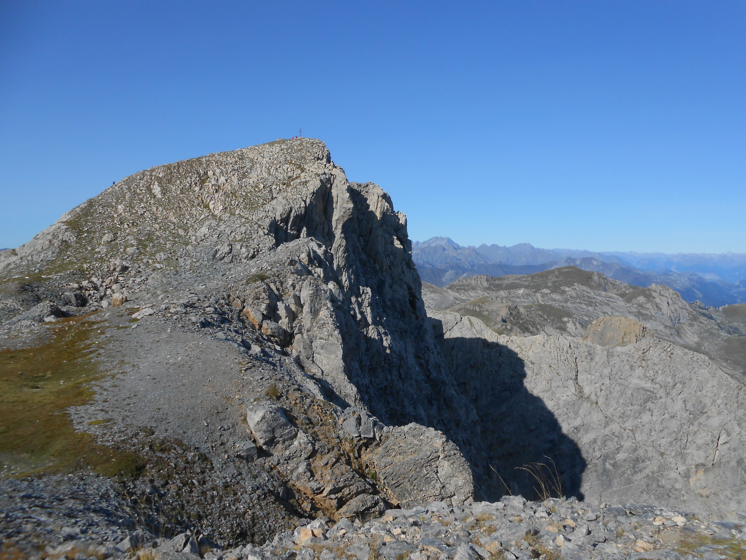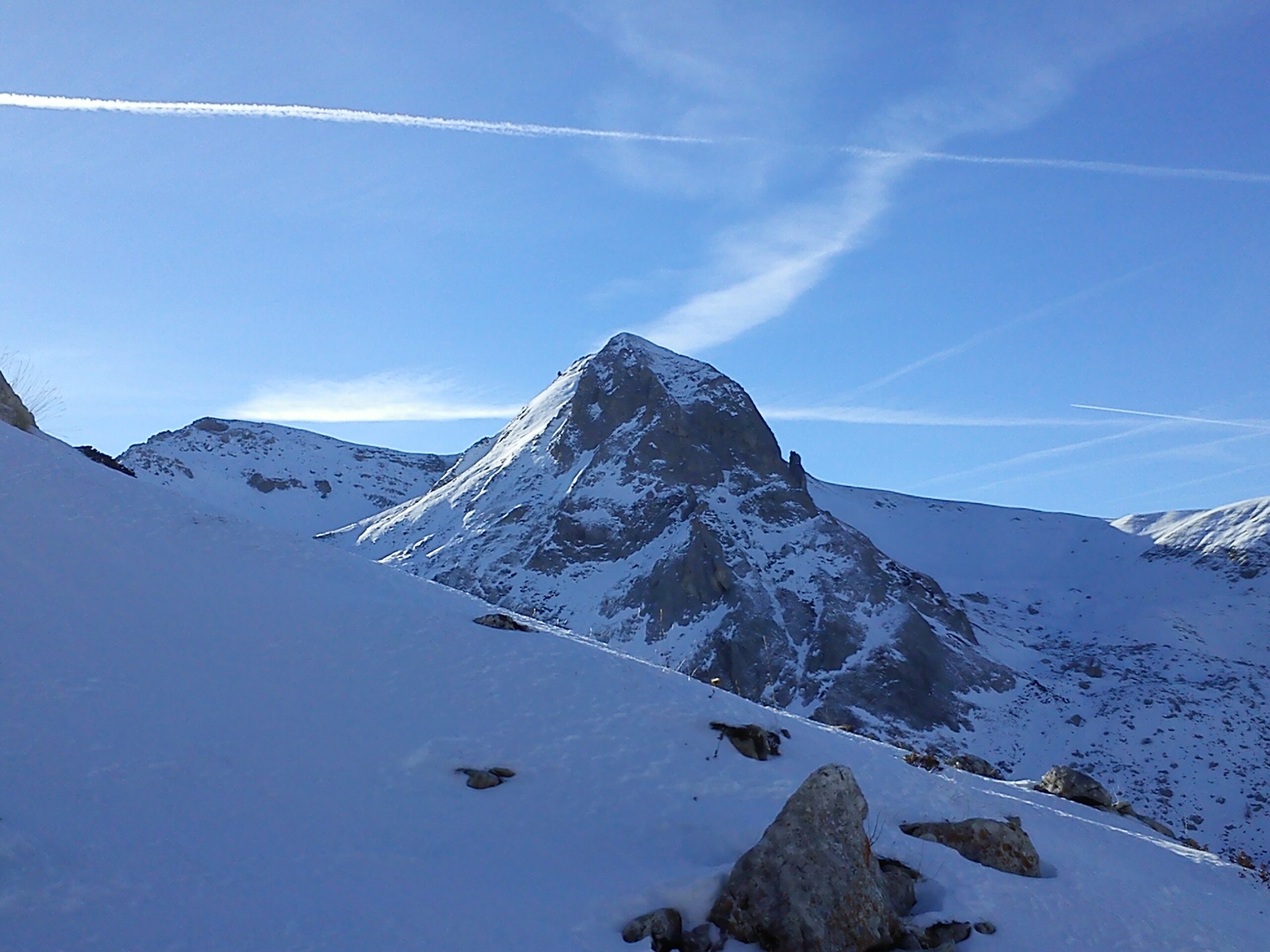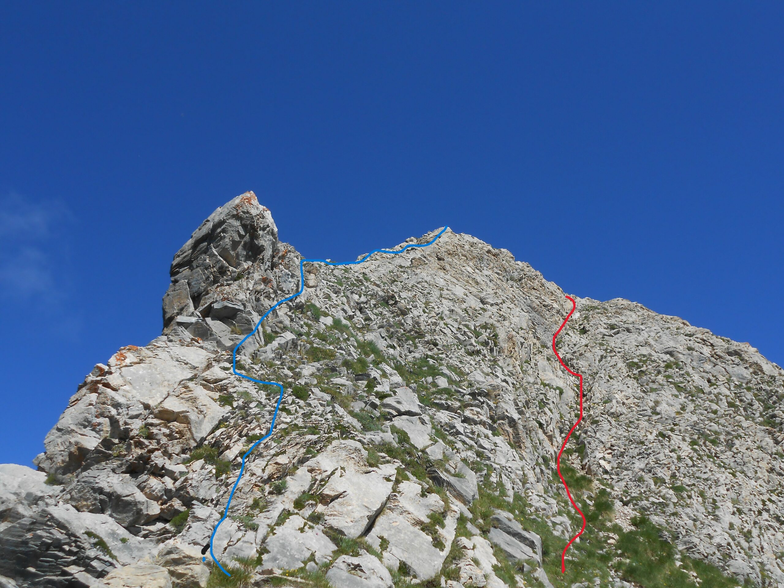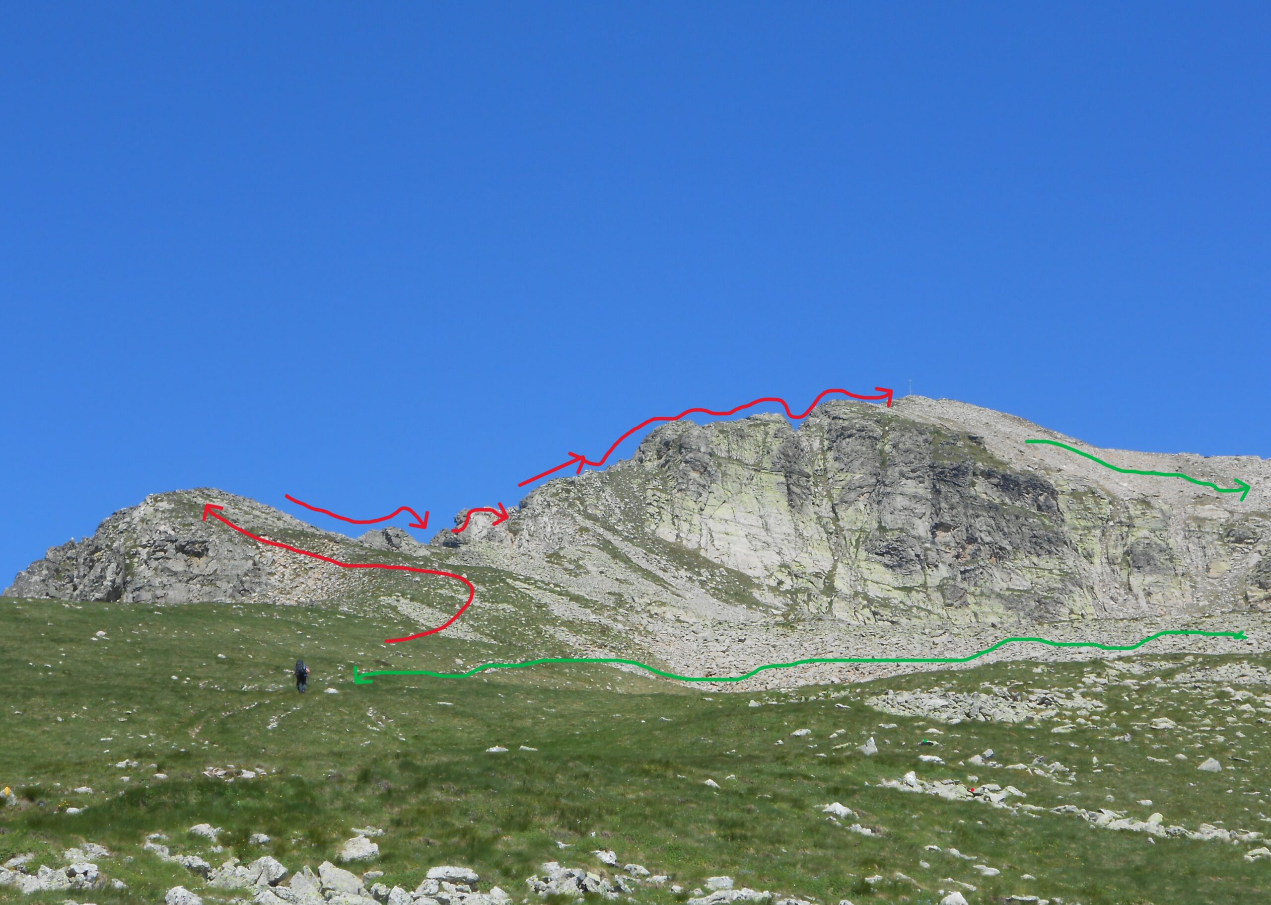 | lorenzovolpe | Rocca dell'Abisso | lorenzovolpe | Il costone al centro porta al Forte Giaura | lorenzovolpe | In rosso la cresta SE, lo svincolo dalla via normale (in verde) | lorenzovolpe | Lungo la cresta | lorenzovolpe | L'anticima con la croce di vetta | lorenzovolpe | Gelas | lorenzovolpe | Arrivato! | lorenzovolpe | La forcella vista dalla via normale | lorenzovolpe | Lago dell'Abisso