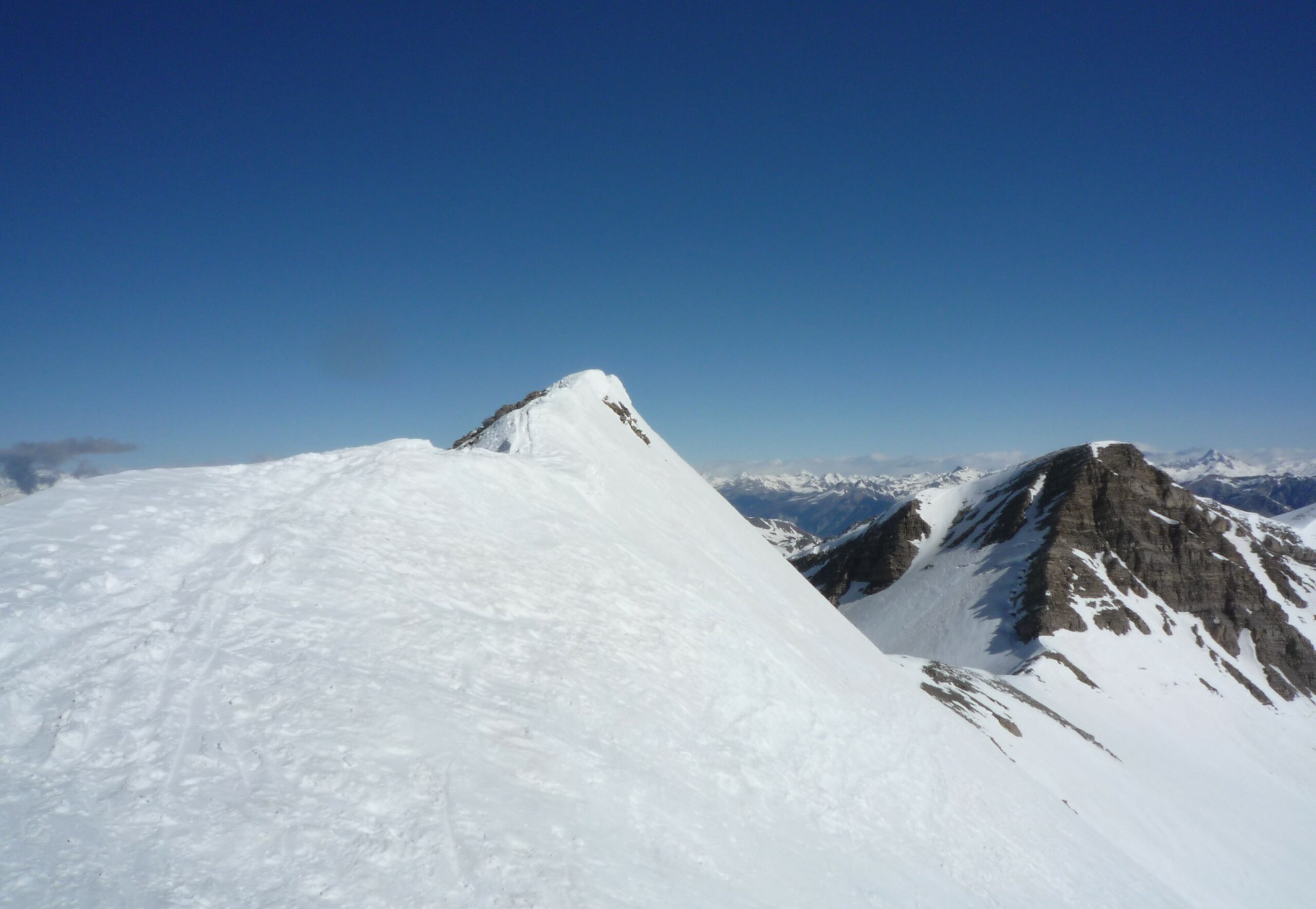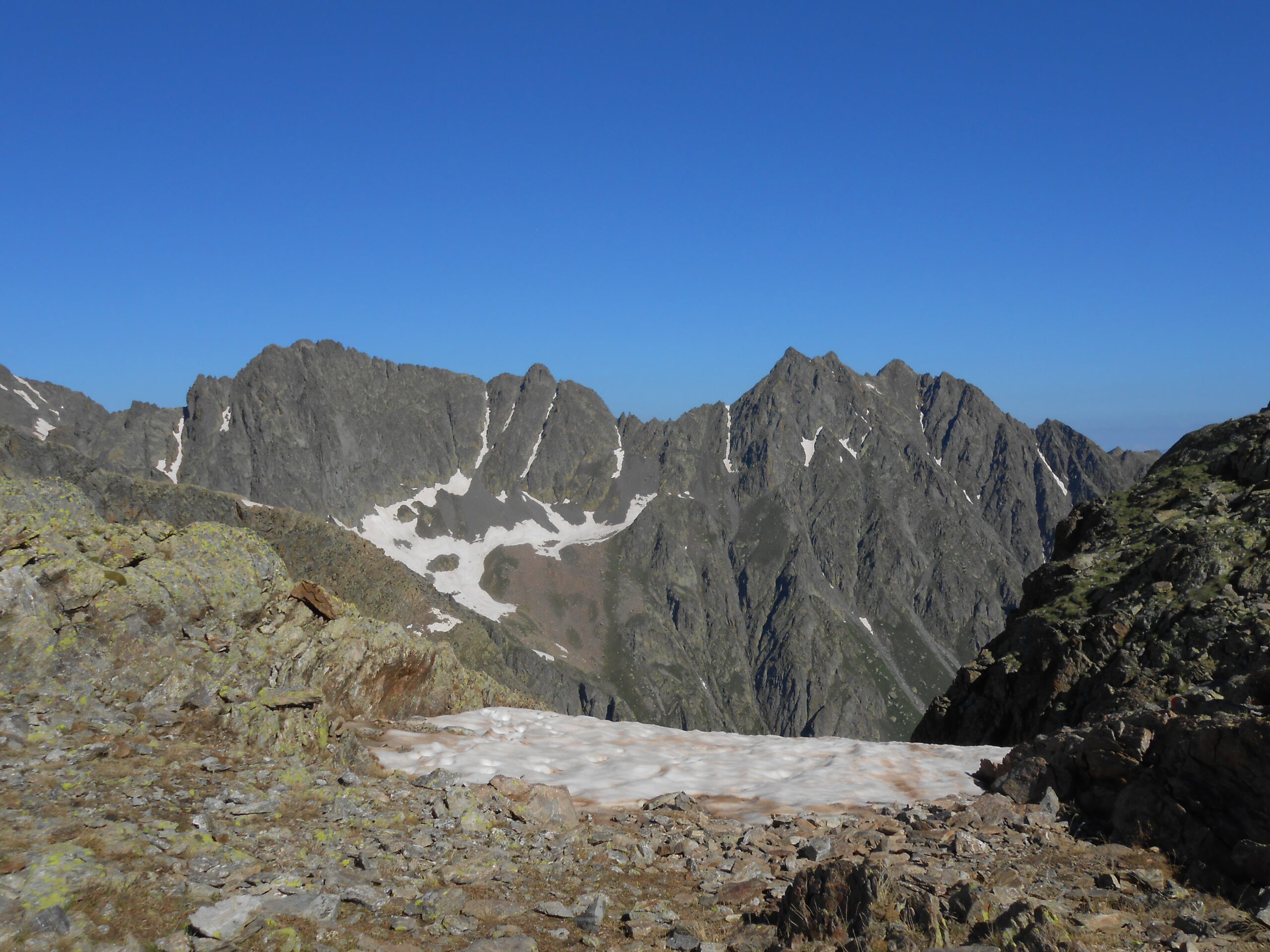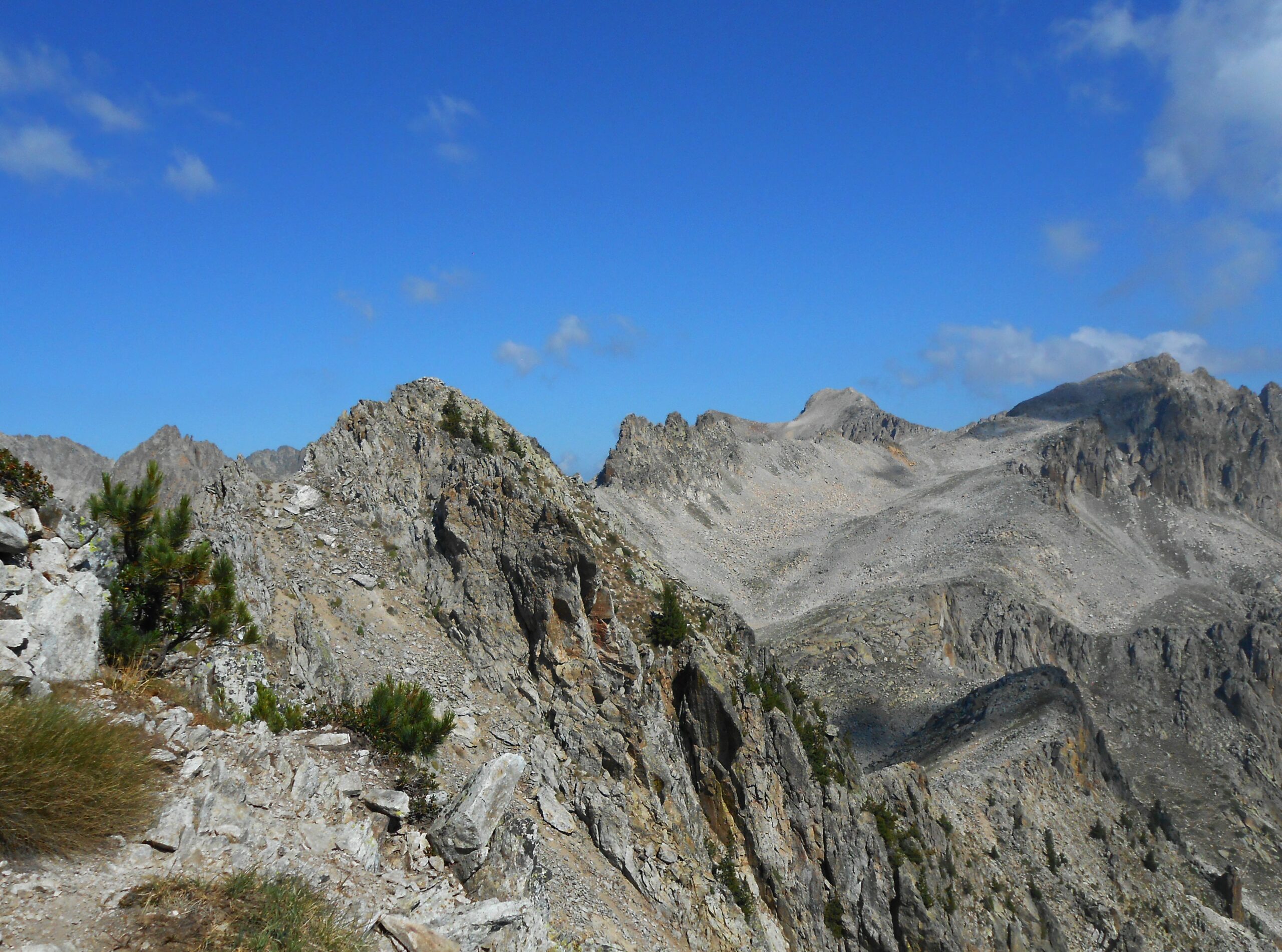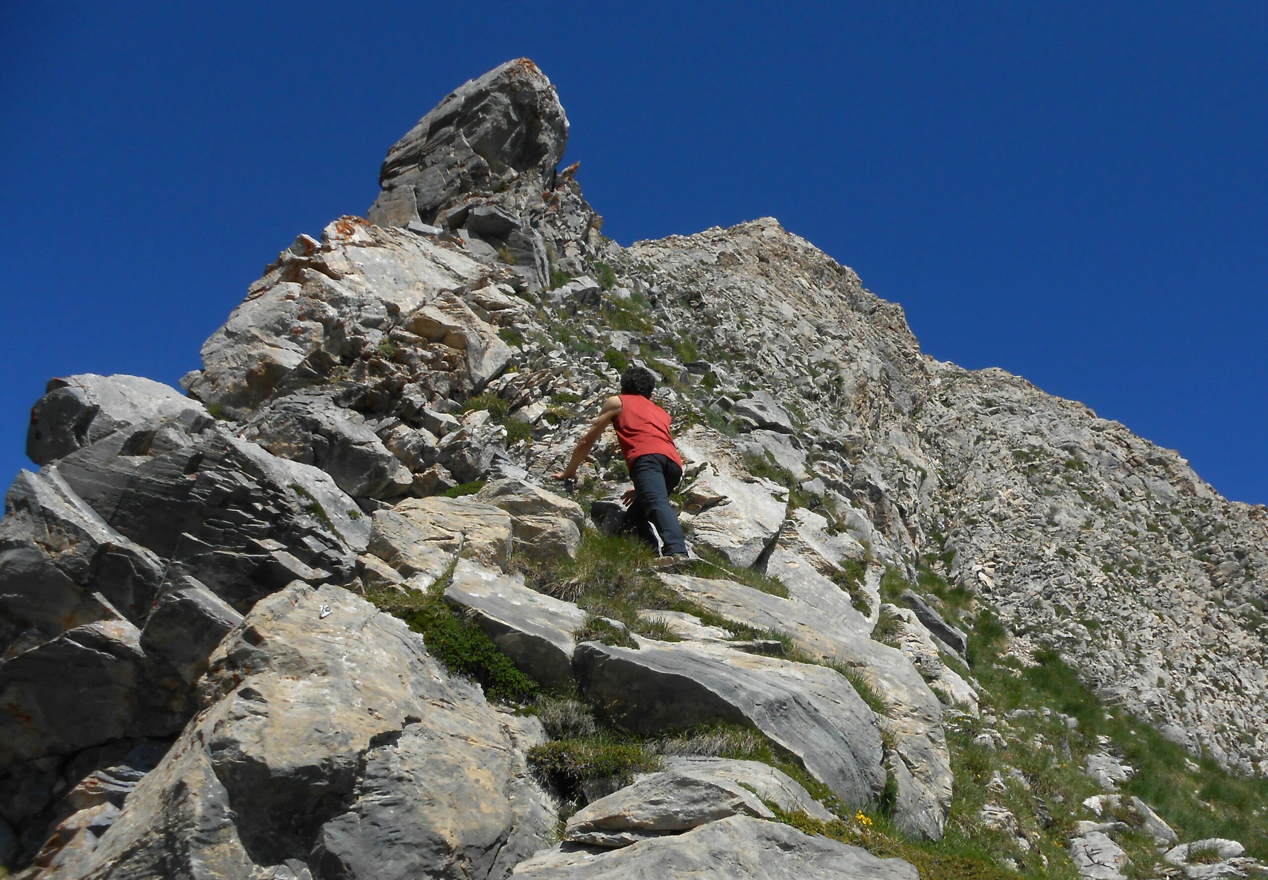 | lorenzovolpe | Rocca dell'Abisso | lorenzovolpe | Il costone al centro porta al Forte Giaura | lorenzovolpe | In rosso la cresta SE, lo svincolo dalla via normale (in verde) | lorenzovolpe | Lungo la cresta | lorenzovolpe | L'anticima con la croce di vetta | lorenzovolpe | Gelas | lorenzovolpe | Arrivato! | lorenzovolpe | La forcella vista dalla via normale | lorenzovolpe | Lago dell'Abisso