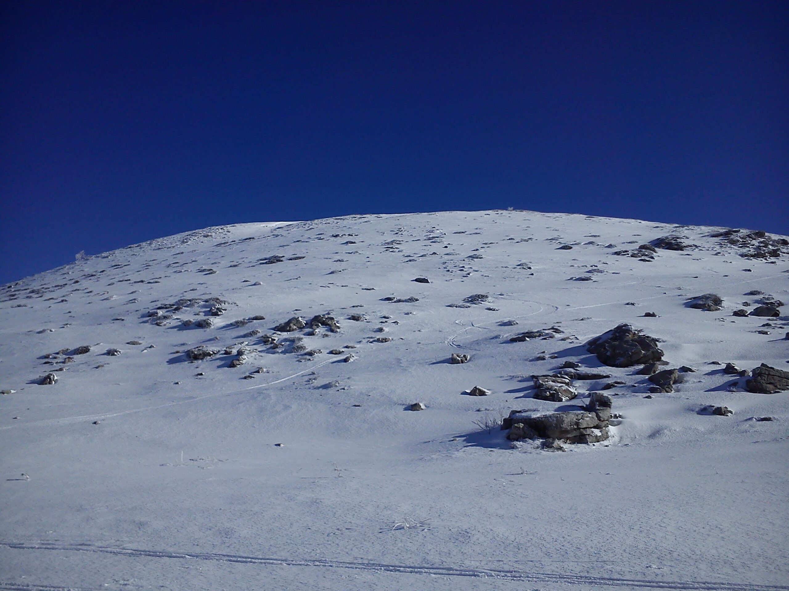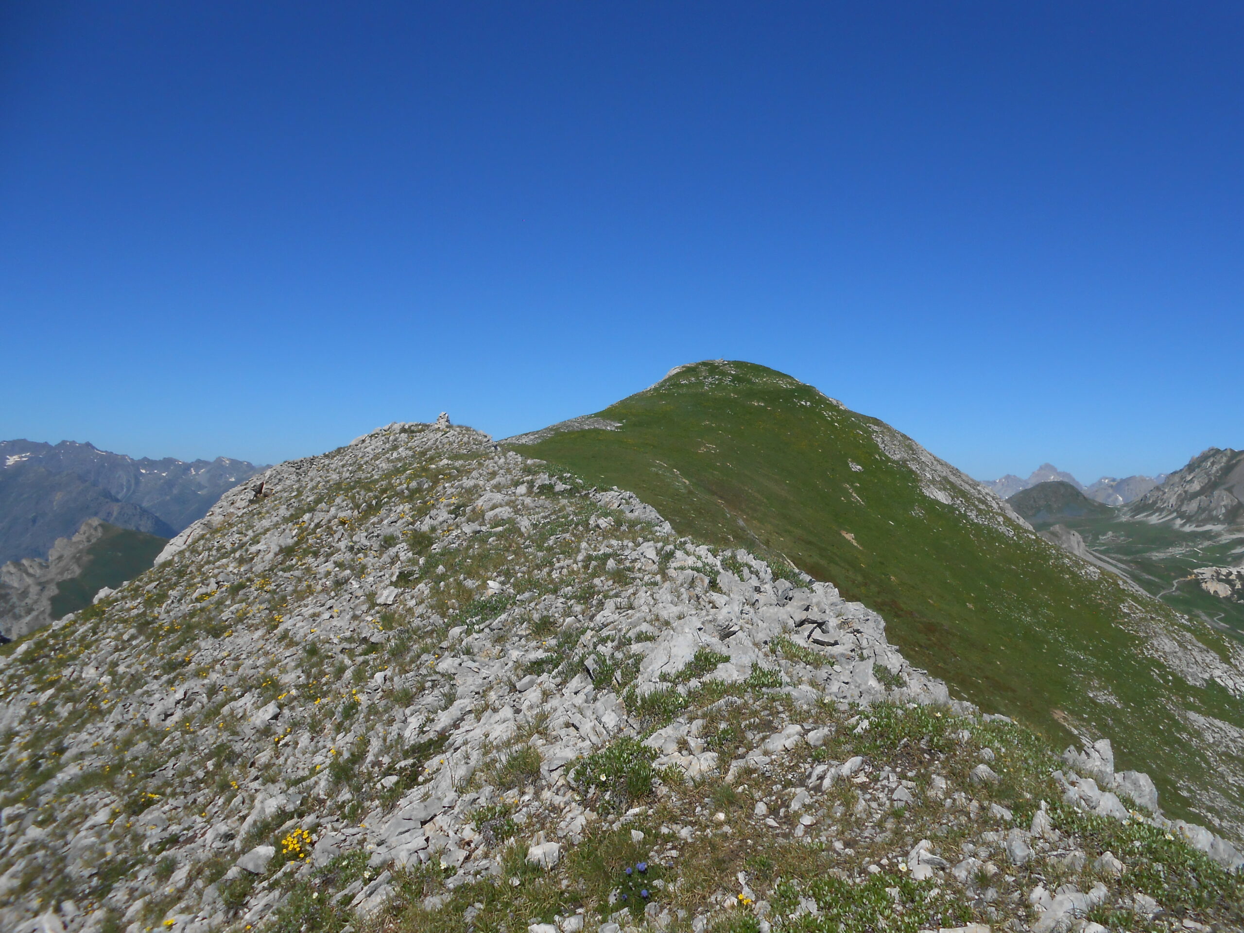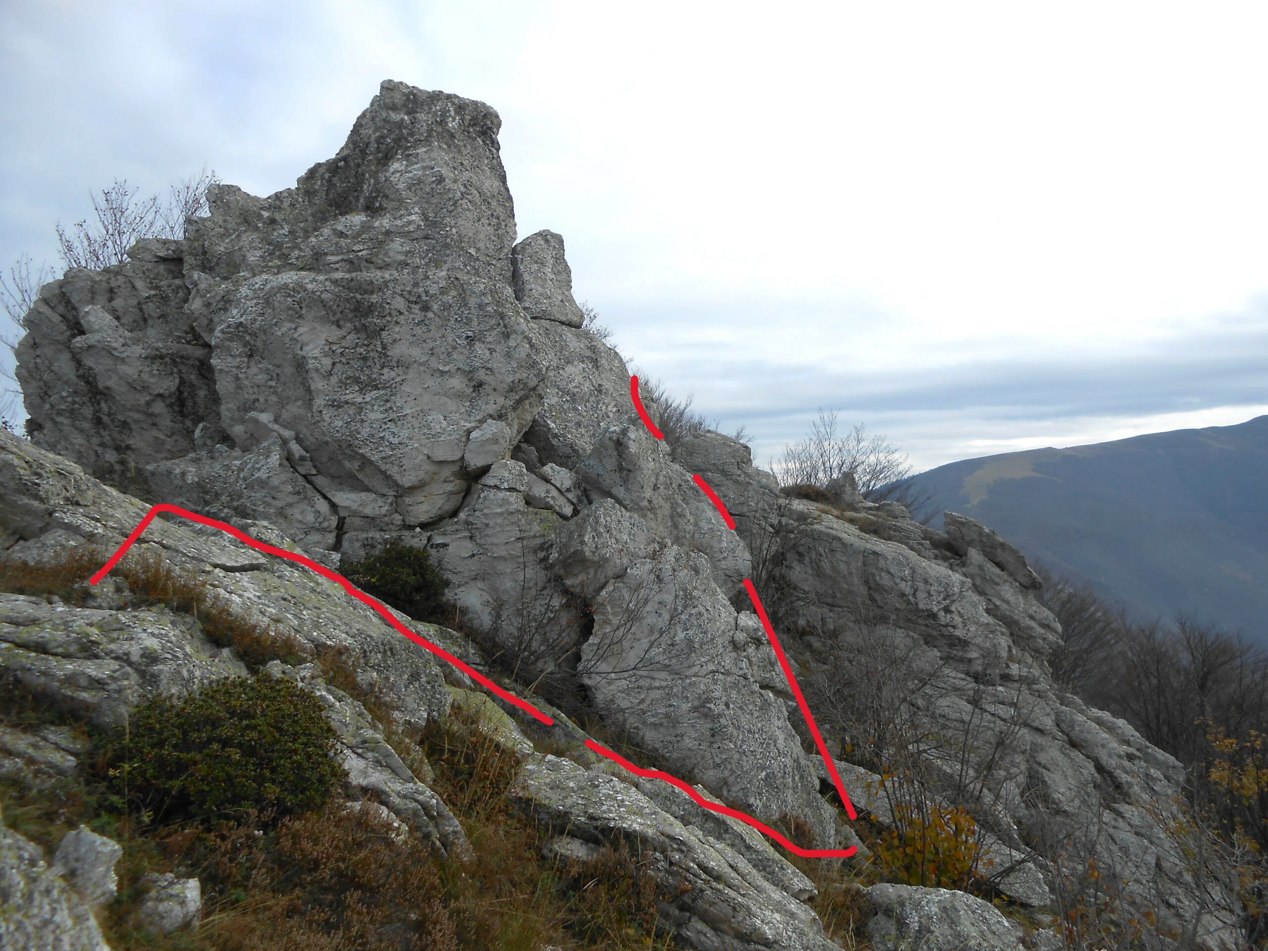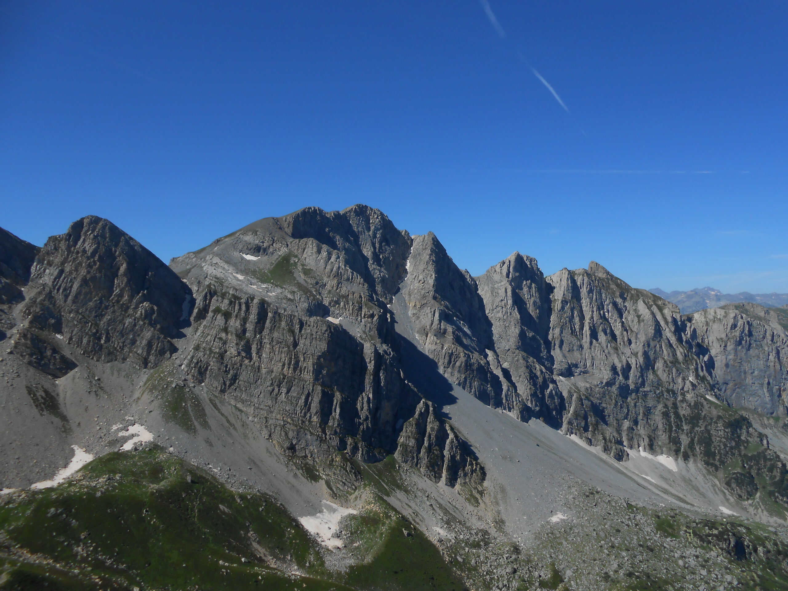 | lorenzovolpe | Rocca dell'Abisso | lorenzovolpe | Il costone al centro porta al Forte Giaura | lorenzovolpe | In rosso la cresta SE, lo svincolo dalla via normale (in verde) | lorenzovolpe | Lungo la cresta | lorenzovolpe | L'anticima con la croce di vetta | lorenzovolpe | Gelas | lorenzovolpe | Arrivato! | lorenzovolpe | La forcella vista dalla via normale | lorenzovolpe | Lago dell'Abisso