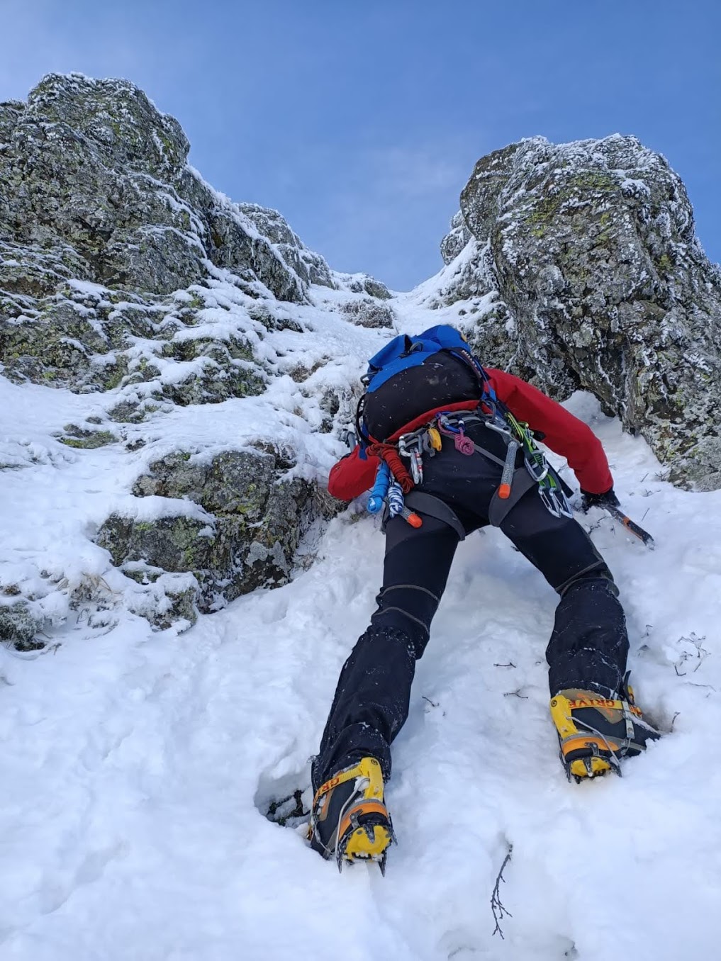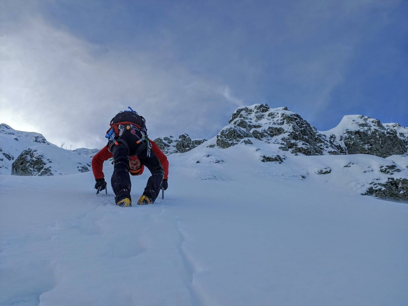 Ancora molta neve freschissima, con un po' più di rigelo sarebbe stata perfetta. molto divertente, in alcuni punti bellissima piolet traction