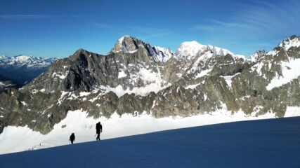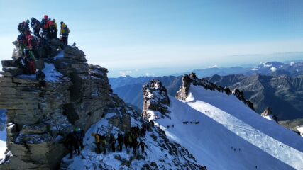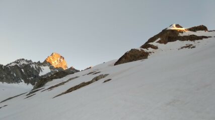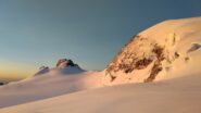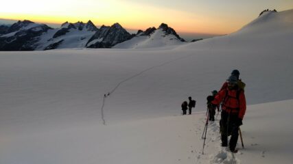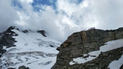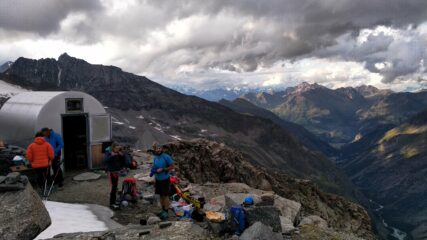 Dormito al Biv. Fiorio (20 posti + 4 nel bivacco vecchio). Al mattino buon rigelo, poi con il primo sole sfondava. Crepaccia terminale molto aperta,…