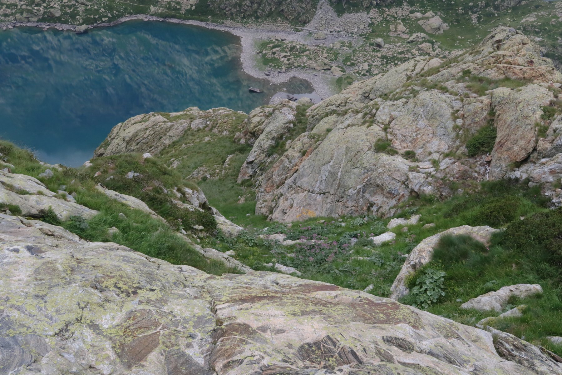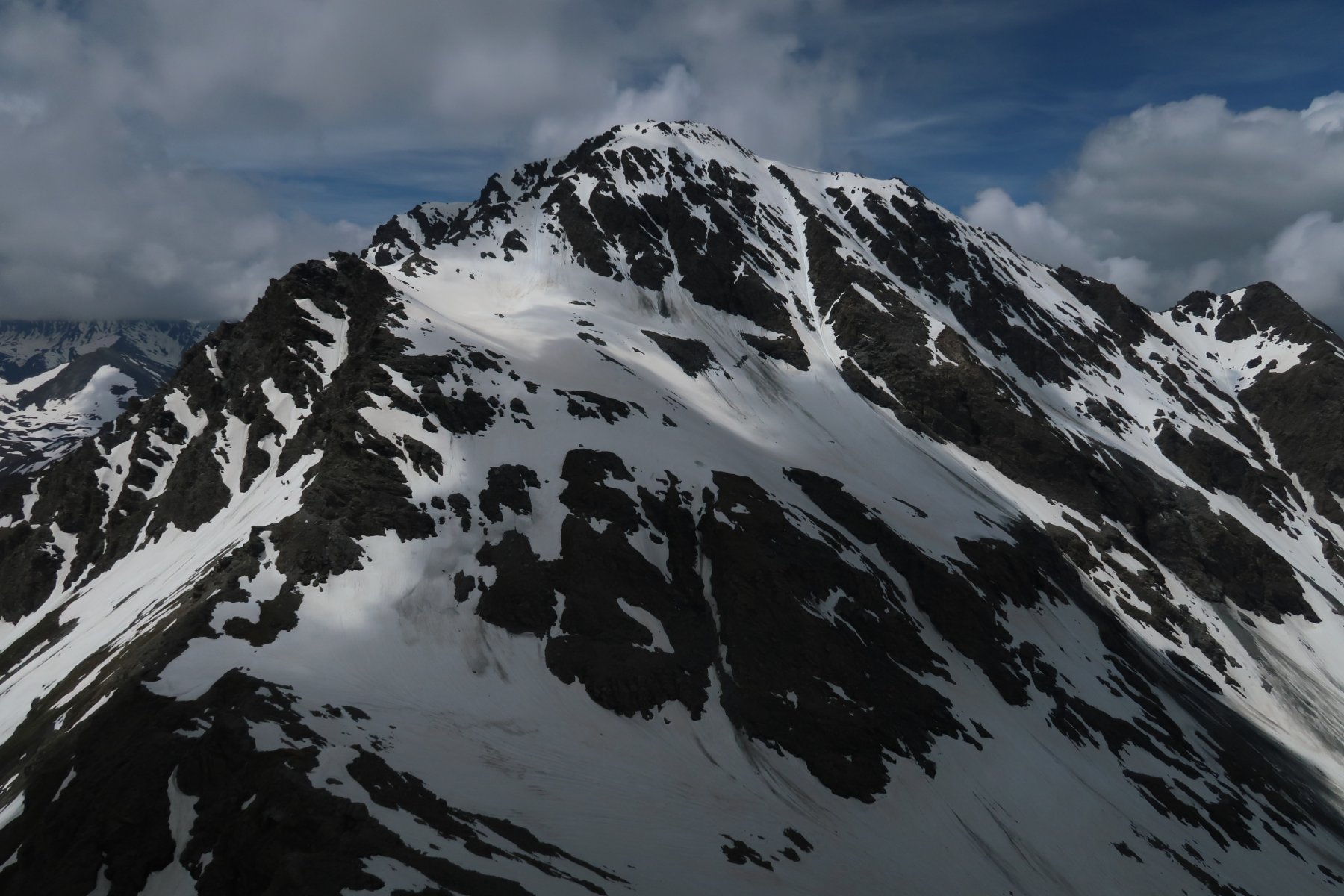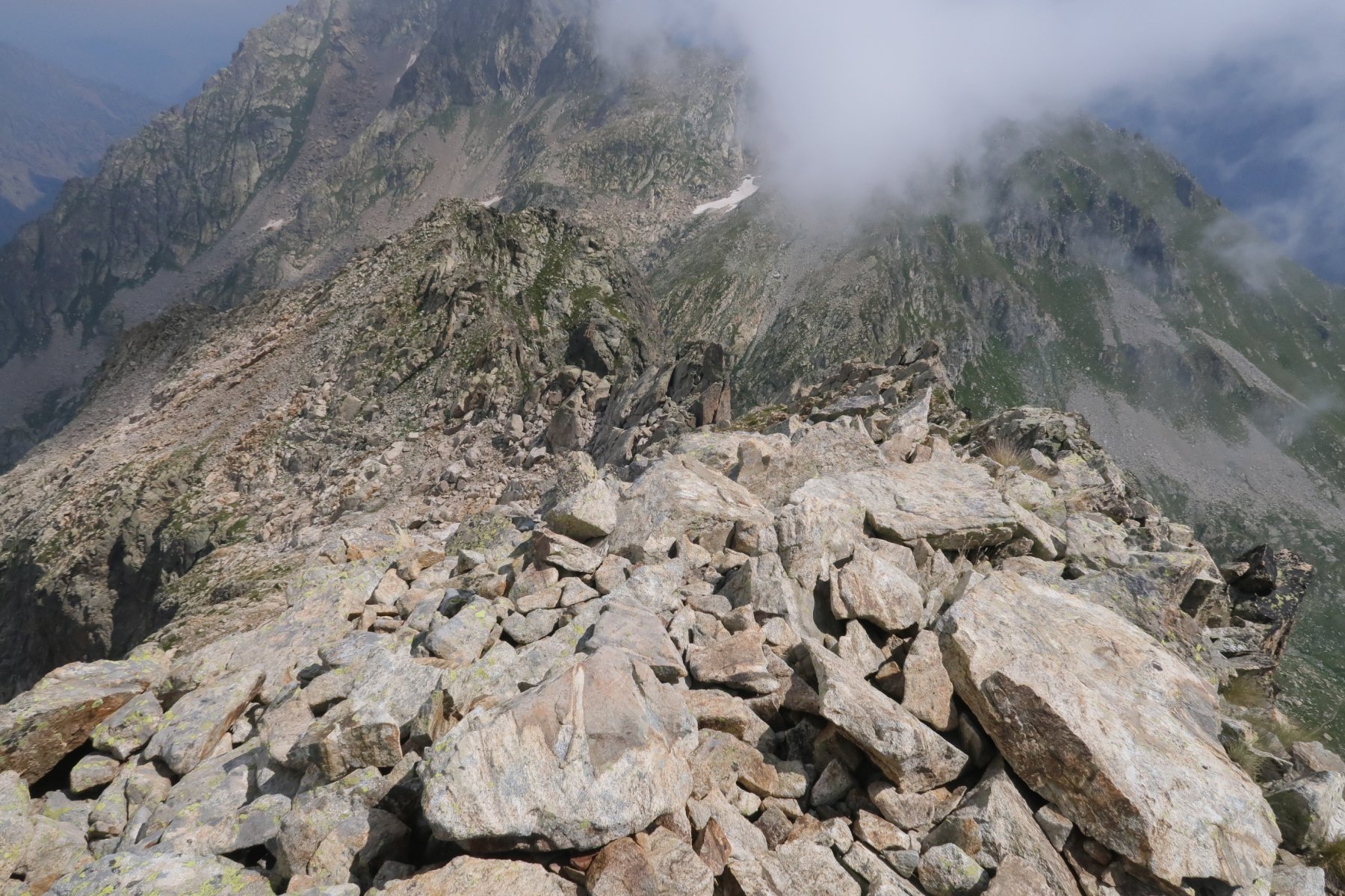 | lorry62 | Il gobbone di roccia nera e arancione che è il primo punto di riferimento. Raggiungere la base erbosa poi salirci sopra da sinistra | lorry62 | La cima della cengia ascendente che porta in cresta, con la caratteristica roccetta che si staglia nel cielo | lorry62 | Sfasciumi da attraversare per raggiungere il Roc. Salire al centro del pendio poi andare a una delle due creste, a dx (facili sfasciumi) o a sx (cresta PD, si attacca all'intaglio sotto le rocce nerastre) | lorry62 | Cresta di discesa | lorry62 | Ultimo tratto di discesa, finalmente segnato in modo evidente