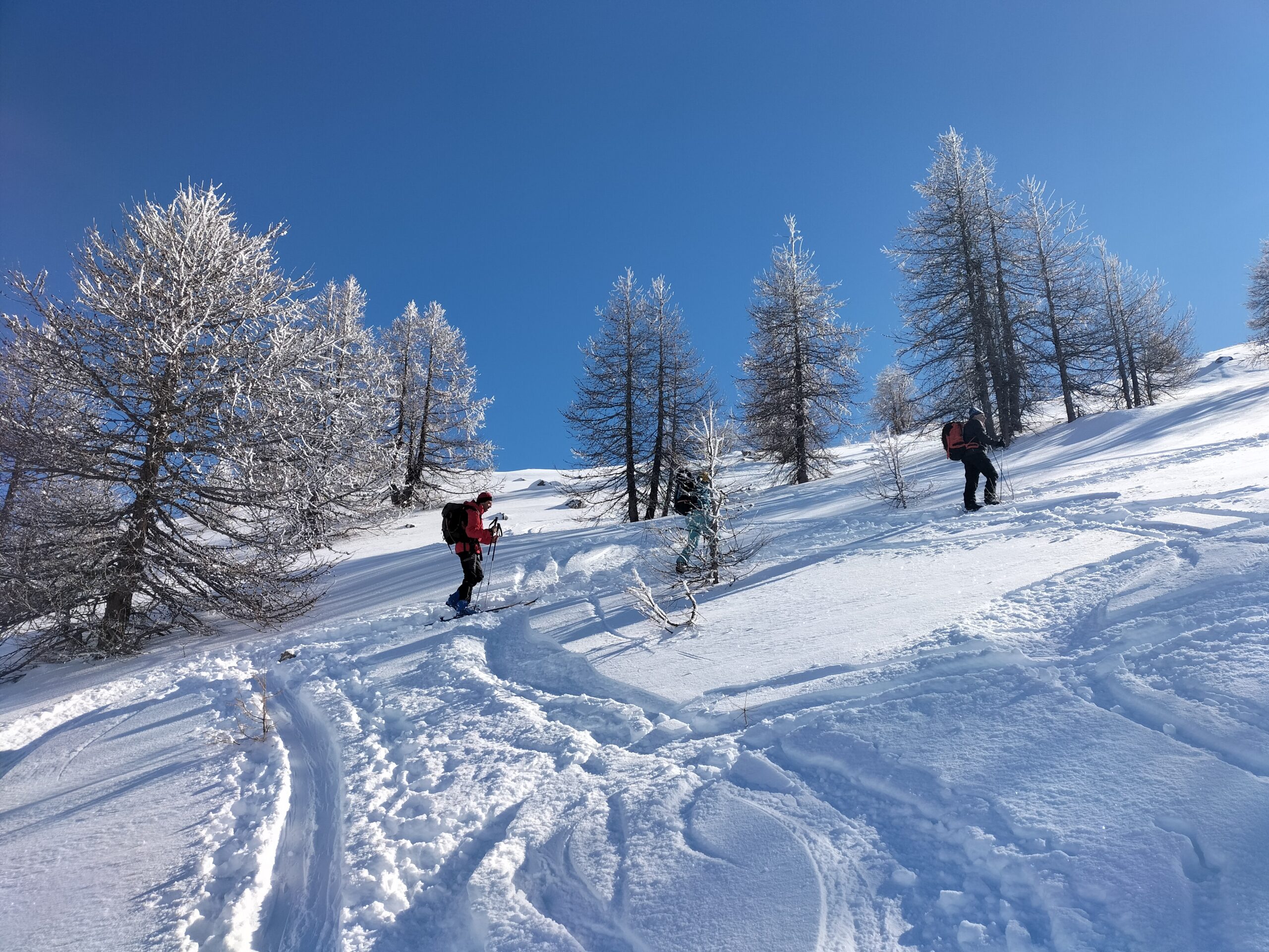 Nella notte sono scesi 5/10 cm che hanno migliorato molto la condizione della neve. saliti lato impianti di Bersezio,abbiamo successivamente traversato a destra nel…