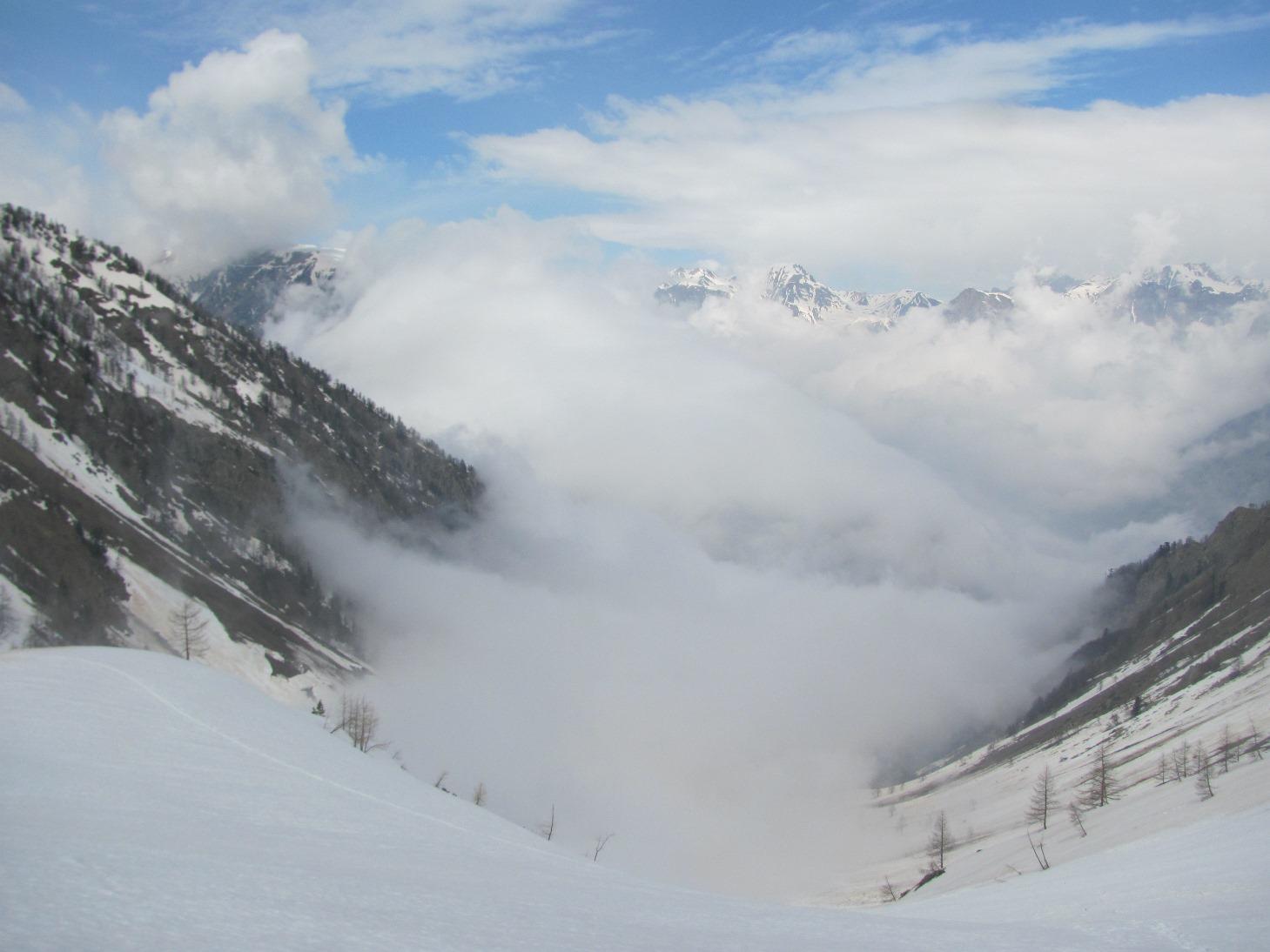 | lovi84 | Tratto centrale della salita | lovi84 | Salendo lungo il vallone del Binec | lovi84 | La bassa valle avvolta dalle nubi | lovi84 | In vetta | lovi84 | Inizia la discesa | lovi84 | In azione in discesa | lovi84 | Un po' di telemark