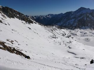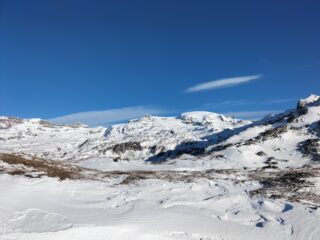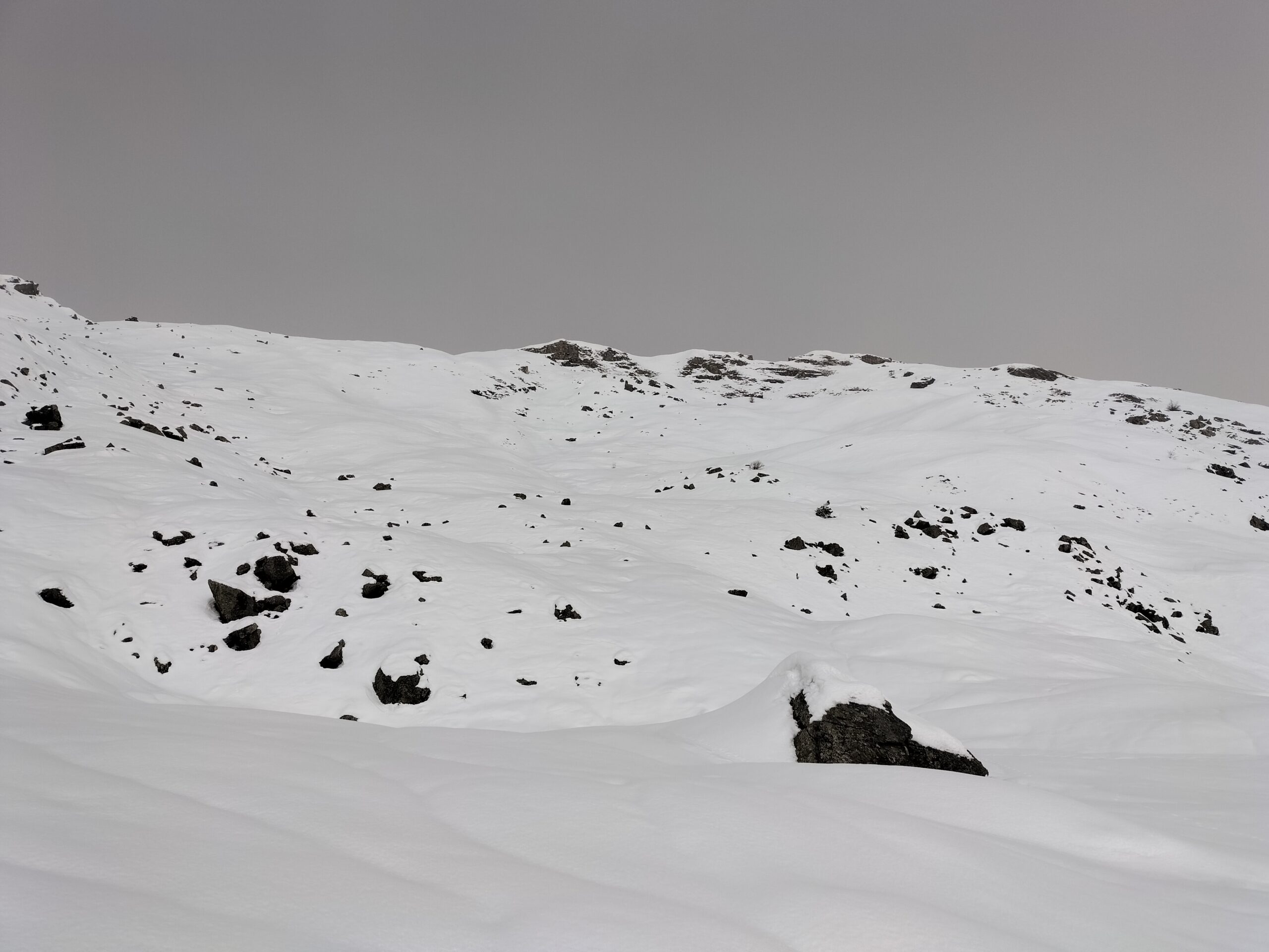 Partiti da lago blu. Il vento ha fatto molti danni. In basso neve molto ventata ma presente,poi aumentano da un lato le pietre e dall'altro…