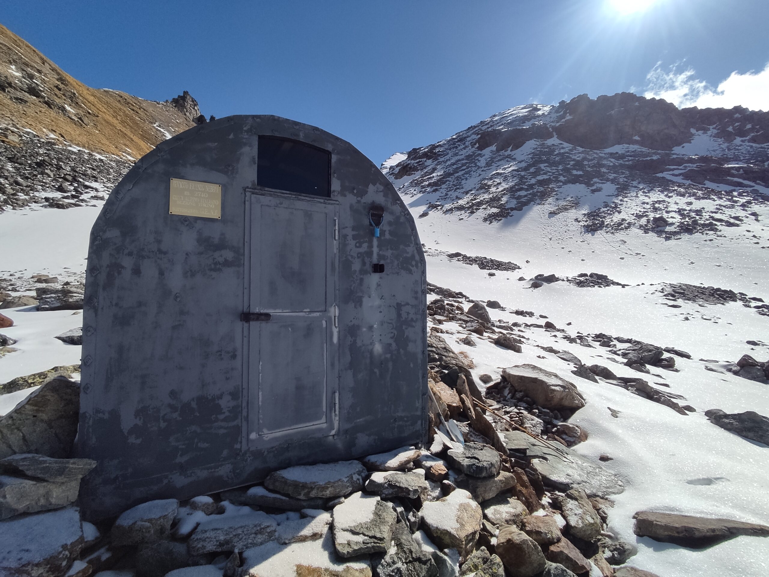 Bivacco Fiorio occupato completamente da 3 Francesi super maleducati che hanno poggiato il proprio materiale ovunque. Tanta gente con gli sci, leggero rigelo mattutino.…