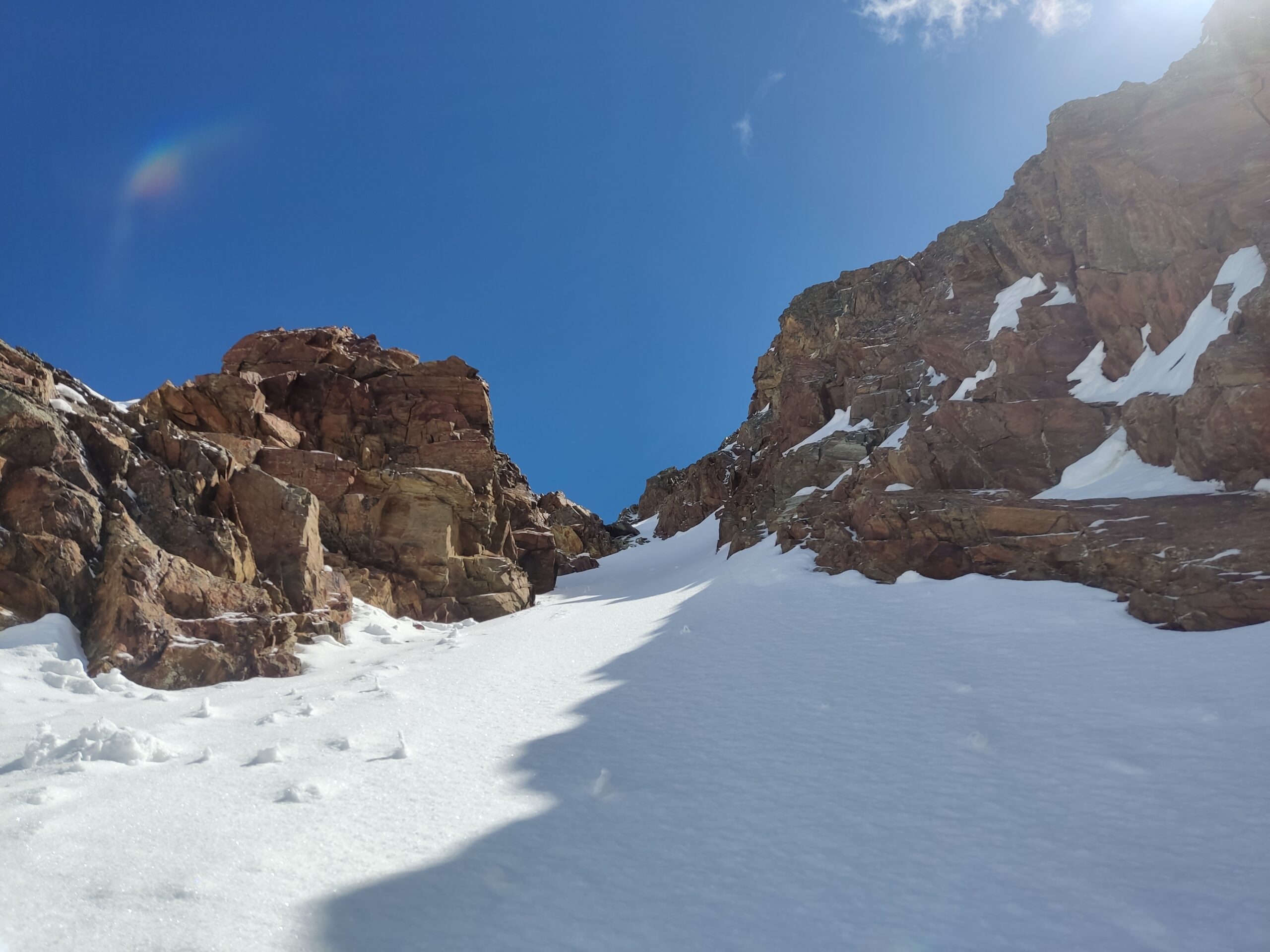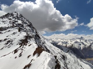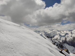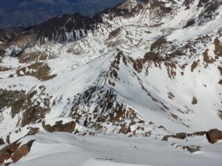 Neve a partire dai 2800/2850mt. Assenza di rigelo notturno, con neve molto farinosa in quota. Nel complesso uscita molto bella, tecnicamente non difficile.