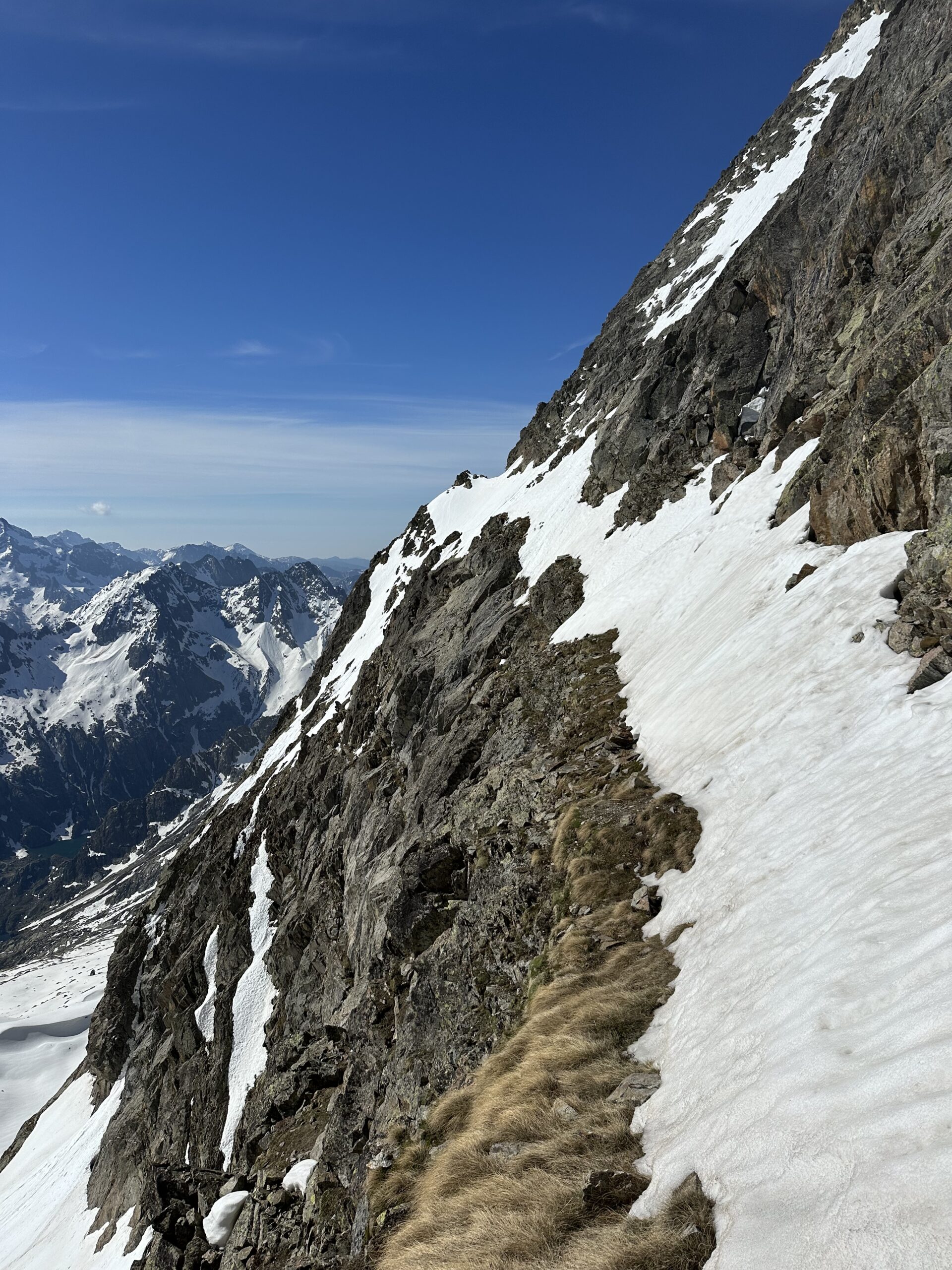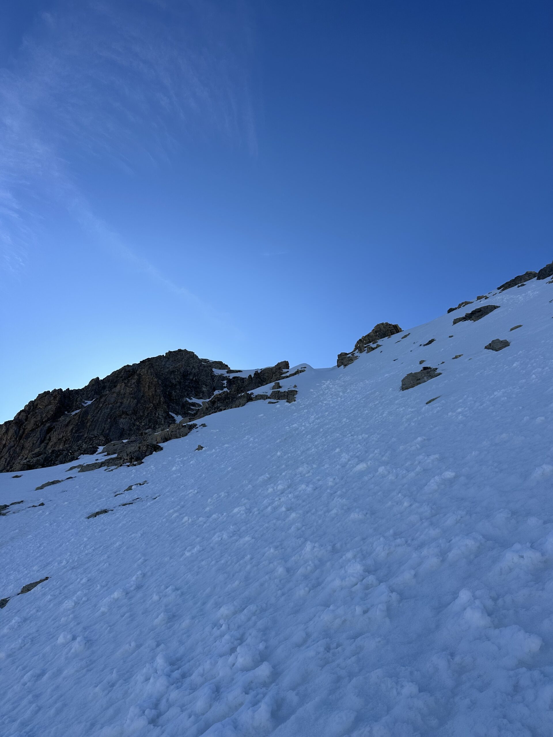 Neve portante con rigelo notturno, salita fino al colletto poi per lingue di neve abbiamo tagliato a sx per raggiungere la cresta che ci ha…