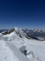 Salita in giornata partendo da Indren. Abbiamo trovato il ghiacciaio in splendide condizioni, coperto però da una decina di centimetri di neve fresca che hanno rallentato…