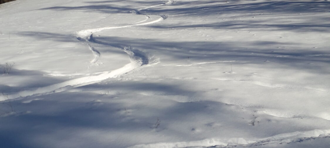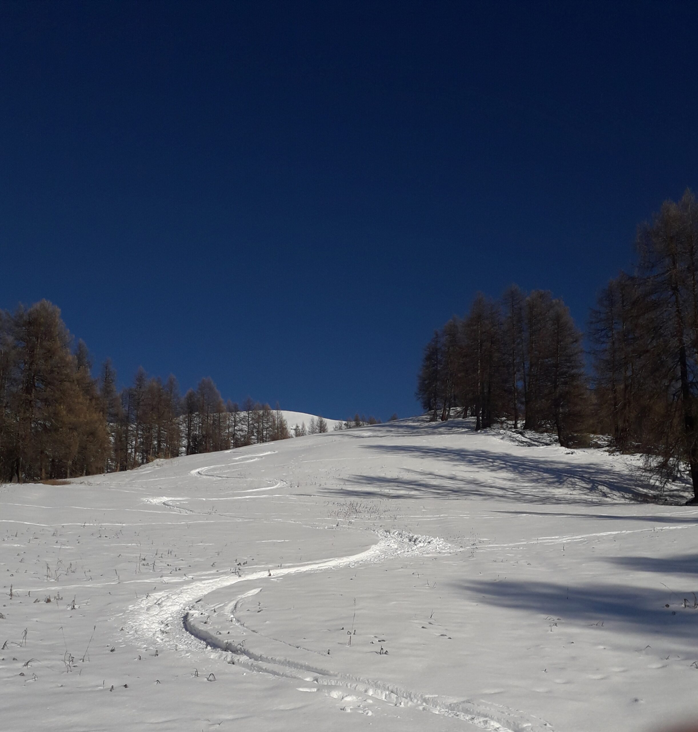 Salito su una traccia a sinistra del baby che purtroppo sì e’ interrotta verso i 400+ ,quindi battuto un po’ e rientrato sulla traccia…