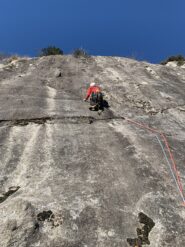 Via molto bella con roccia ruvida e a tratti dolorosa! Sul primo tiro boscoso presente una nuova corda fissa. Avvicinamento un po’ ravanoso, discesa senza intoppi. Ambientone e…