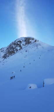 Partiti dal piazzale inferiore alle 9.15. Impianti aperti. Saliti dalla stradina a dx del canalone (guardando verso l'alto). Ottima traccia fino in cima. Vento gelido.…