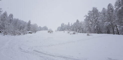 Partiti alle sette da quota 1400 circa, lasciando l'auto nella curva da cui parte la strada sterrata che porta all'edificio rosso sulle piste, da dove…