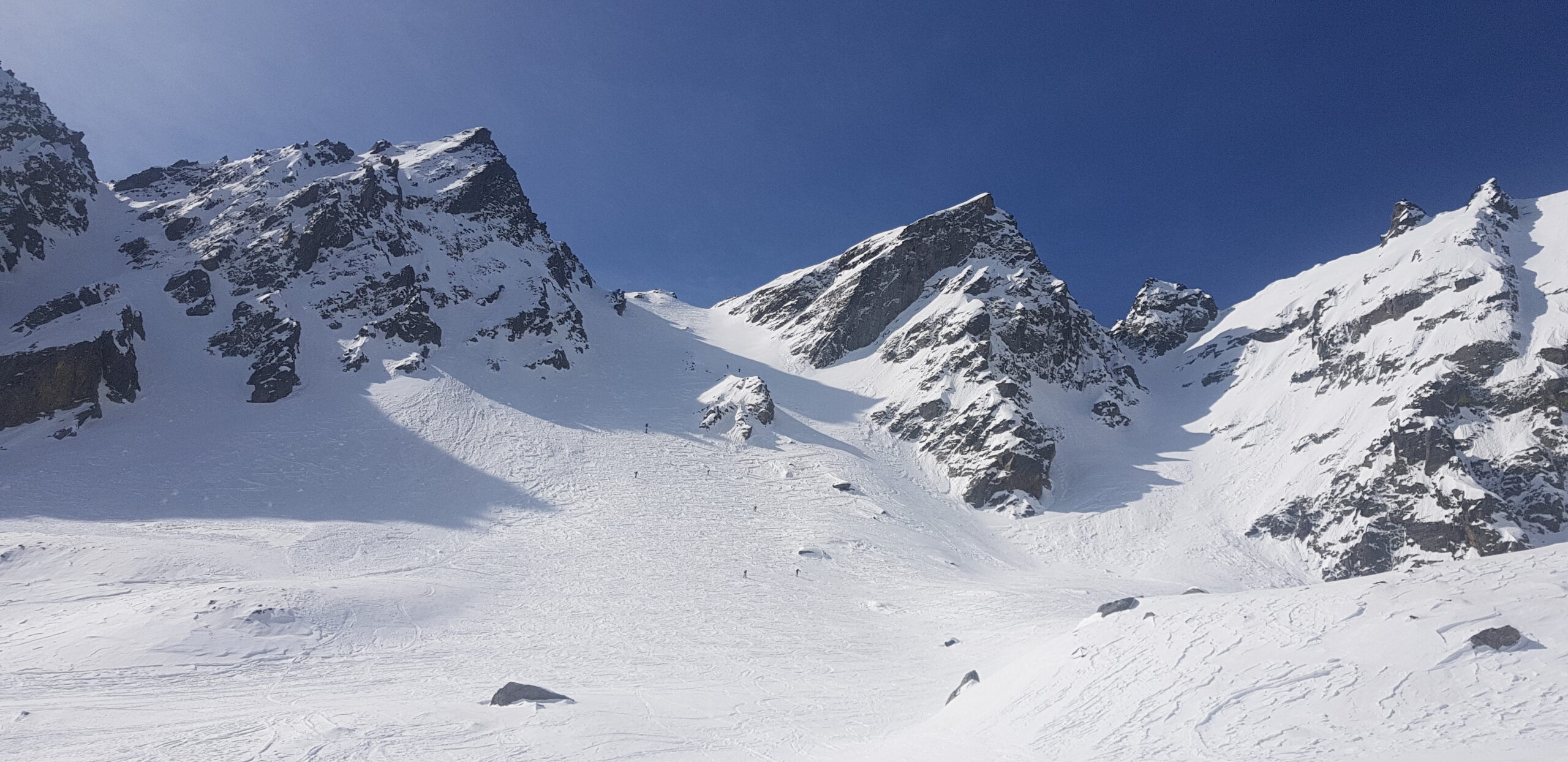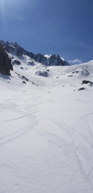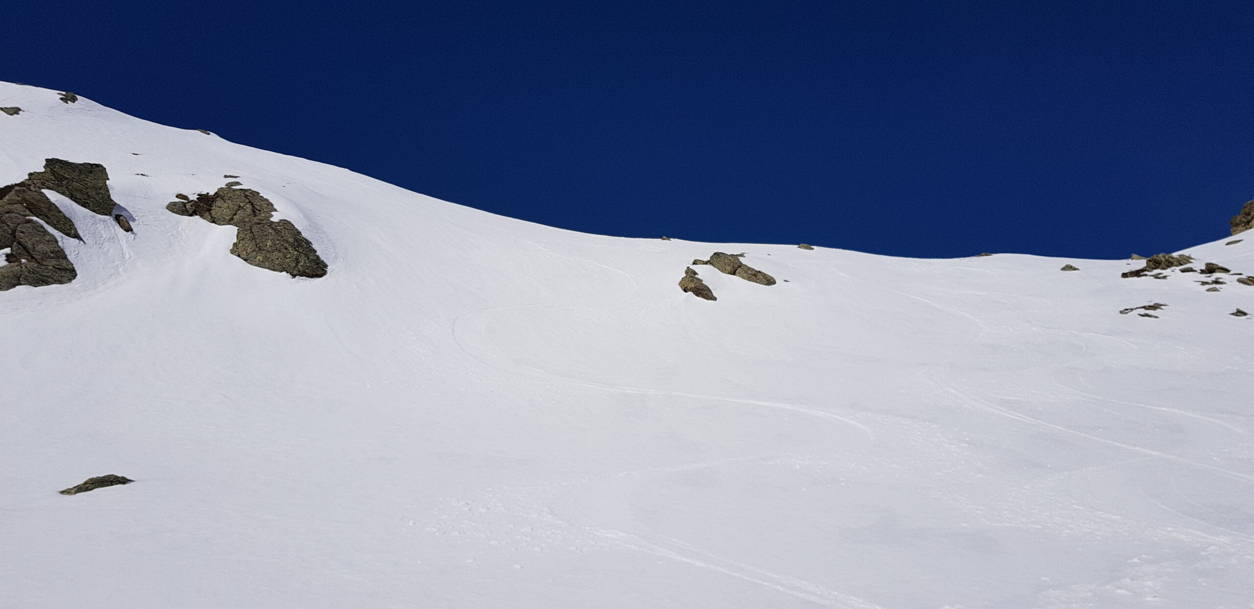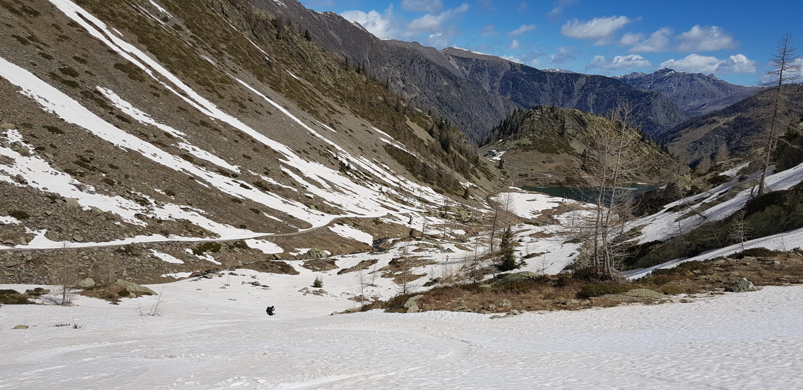 Partenza da quota 2400 (dove la strada è chiusa) alle 7.45 con sci a spalle, che abbiamo portato fino a scollinare verso il Col Vieux.…
