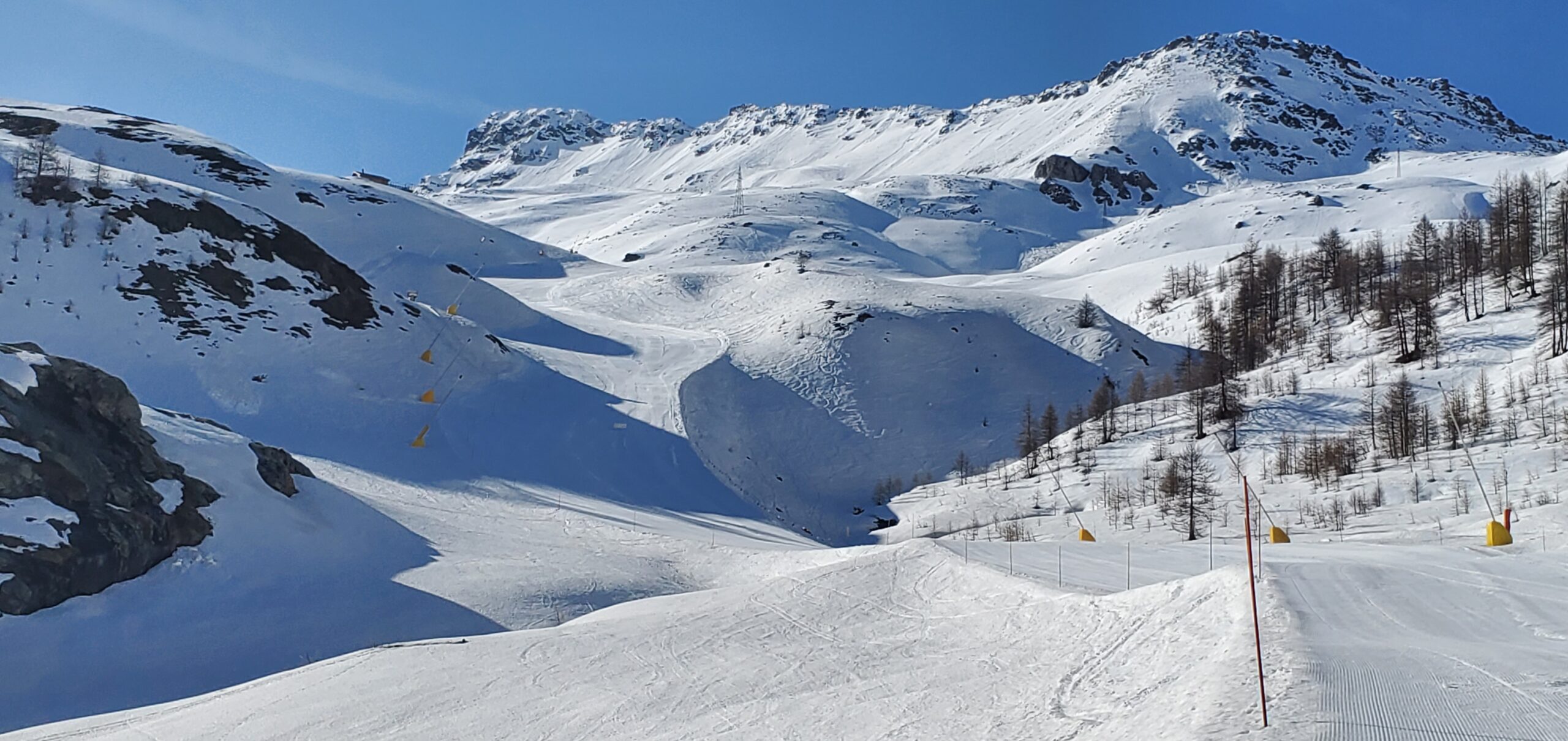 Oggi penultimo giorno di apertura impianti. Siamo salite dal Ventina, a bordo pista, ancora tantissima neve, dal parcheggio. Tristissimo pensare che ogni anno una draga…