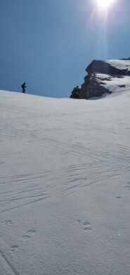 Anto ci ha lasciati alla fine della strada per il Gran San Bernardo e poi è andato a Crevacol. Saliti su buona traccia fino in…