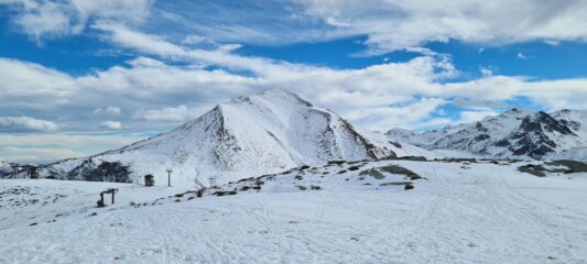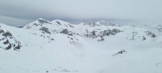 Partiti da Pian Munè alle 8.45. Siamo saliti dalle piste, ma si poteva benissimo salire dal vallone a sx. Dalla cima siamo scesi per cinquecento…